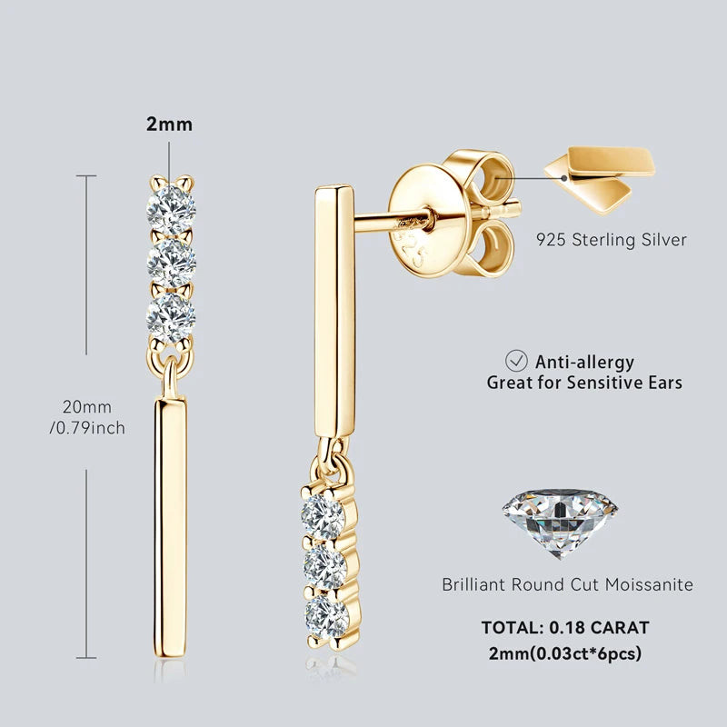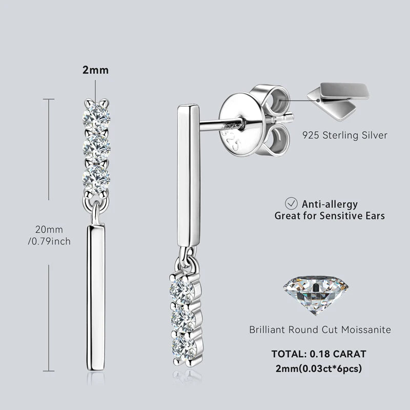 Lnngy Pendientes Plata 925 Sterling Silver Stud Earring for Women Mini 2mm Moissanite Earrings Fashion Tassel Jewelry Gift