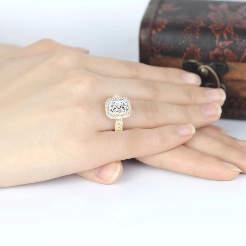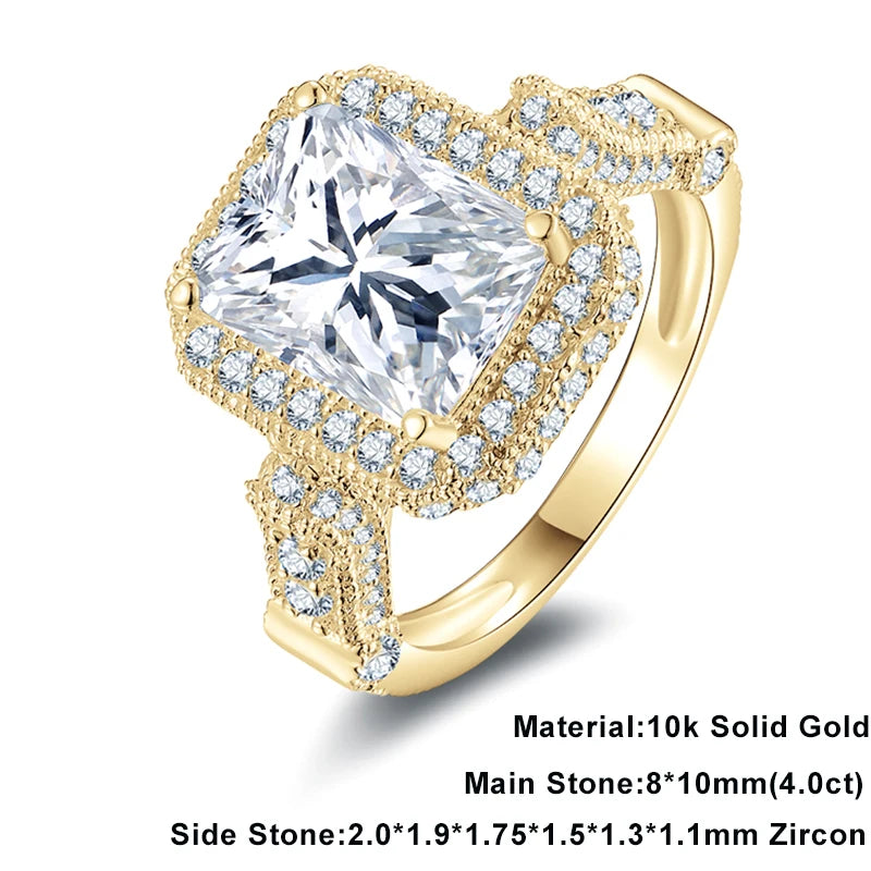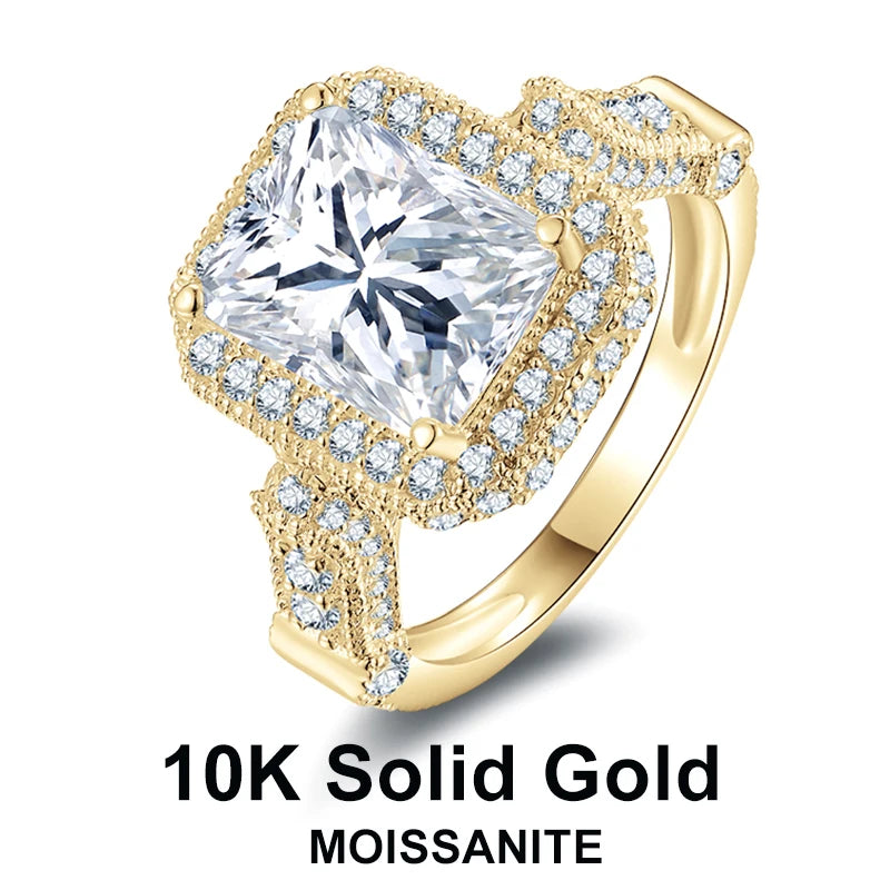 Lnngy Pure 10K Yellow Gold Wedding Bands Radiant Cut 8*10mm Moissanite Engagement Ring for Women Exquisite Finger Jewelry Gift