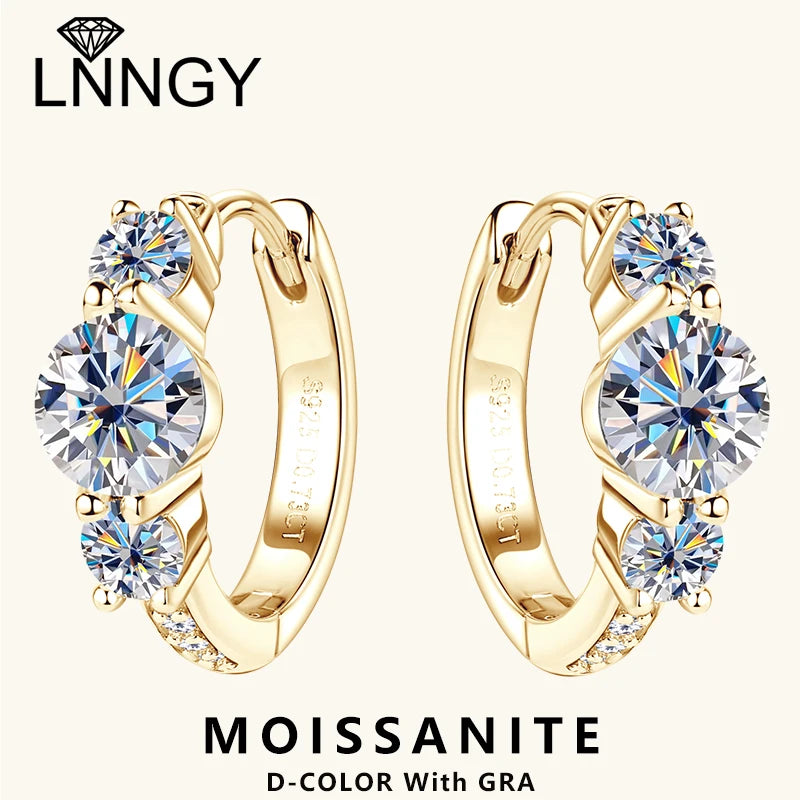 Lnngy Three Stone Moissanite Earring Original 925 Sterling Silver Hoops Earring For Women Girls Lab Created Diamond Jewelry Gift