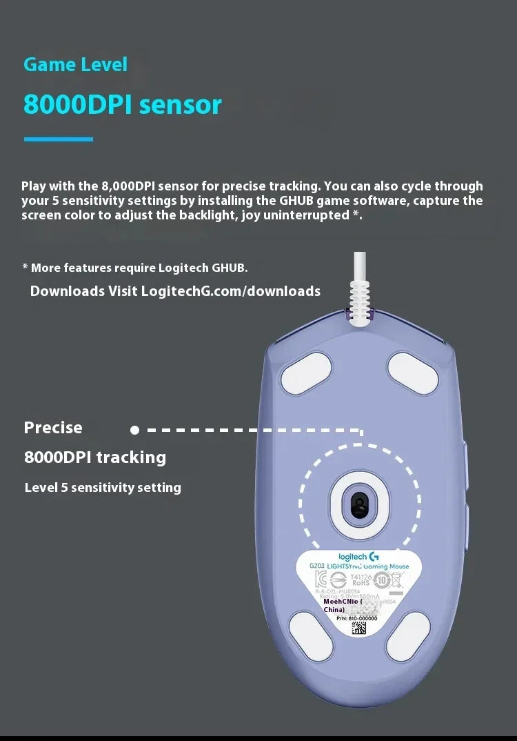 Logitech G203 wired mechanical gaming mouse csgo eat chicken press gun game peripheral RGB lighting