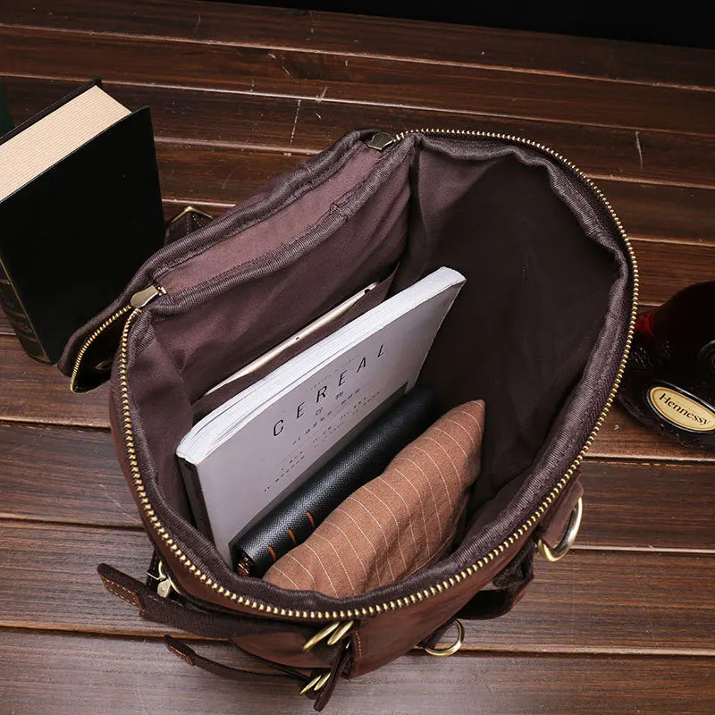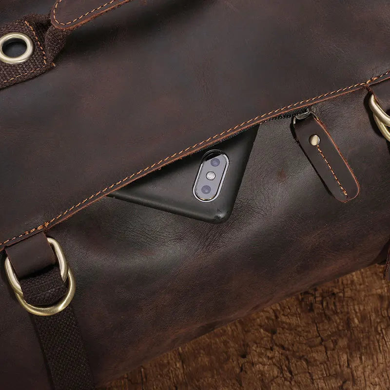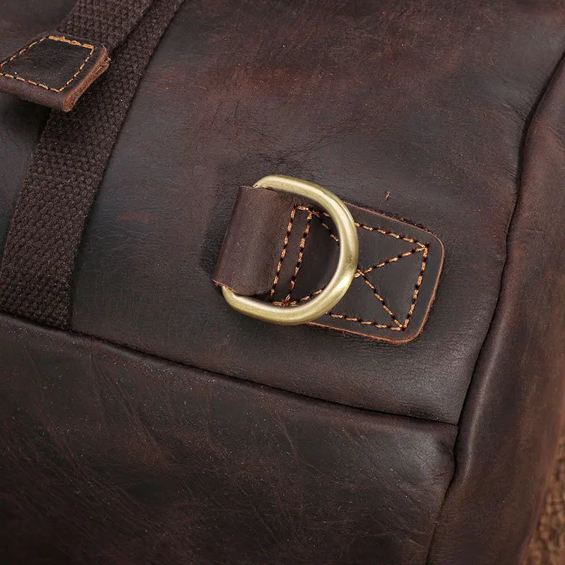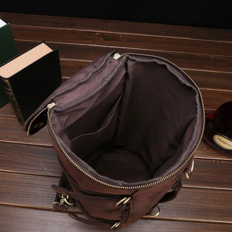 Luufan Unique Design Leather Backpack For Men Vintage Crazy Horse Leather Bucket Daypack Large Male Travel Bag Male Backpacks