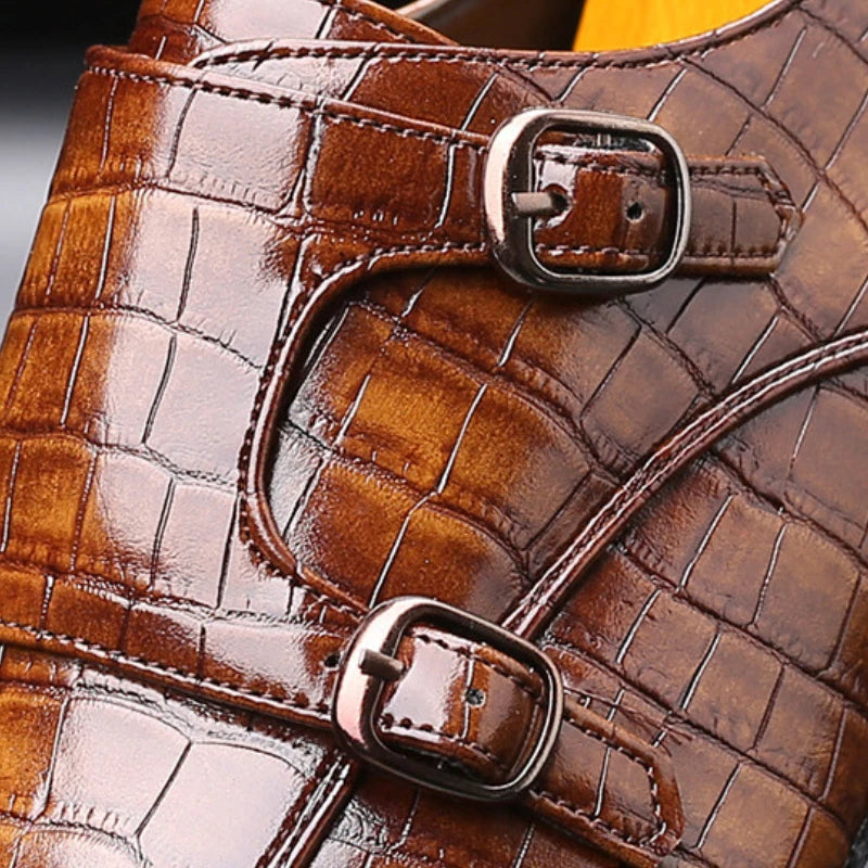 Pattern Pointed Toe Oxford Shoes: Double Monk Strap Shoes for Men