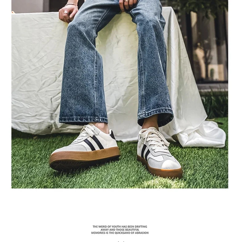 Men's Casual Retro German Training Shoes Lace-up Lightweight Comfortable Sports Flat Shoes Men Skateboard Running Shoes