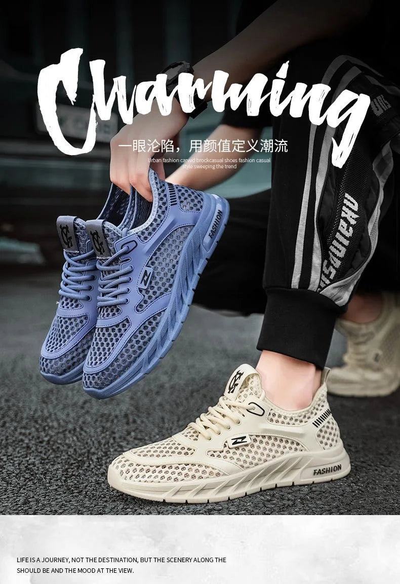 Men's Mesh Sneakers 2024 Summer Mesh Sports Breathable Casual Shoes Comfortable Men's Tennis Shoes Lightweight Running Shoes