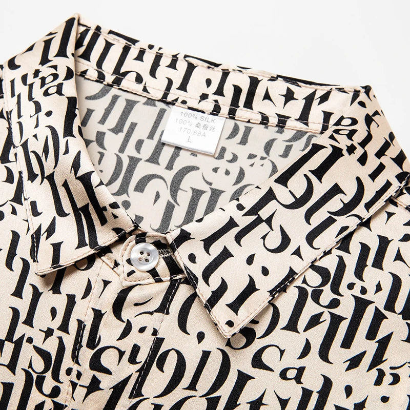 Mulberry Silk 100% Print Dress Men Shirt Short Sleeve Casual Icy Summer Quality Smooth Comfortable Regular Fit Camisas De Hombre