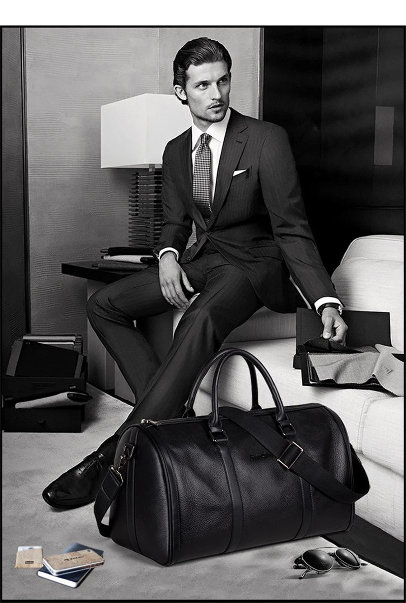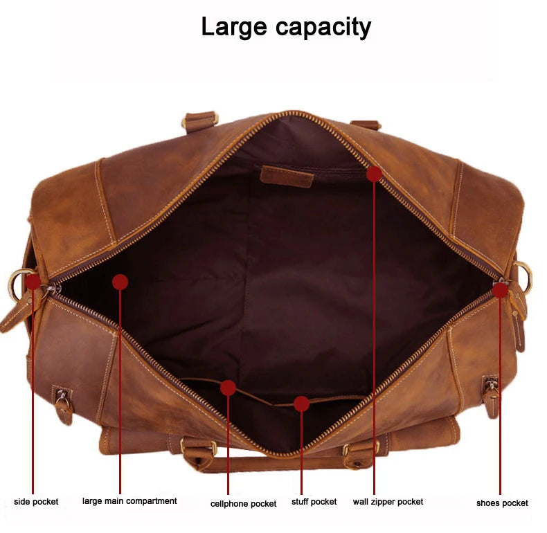 MUNUKI Vintage Crazy Horse Genuine Leather Travel bag Large Luggage bag men Leather duffle bag Large Weekend Bag Tote Big