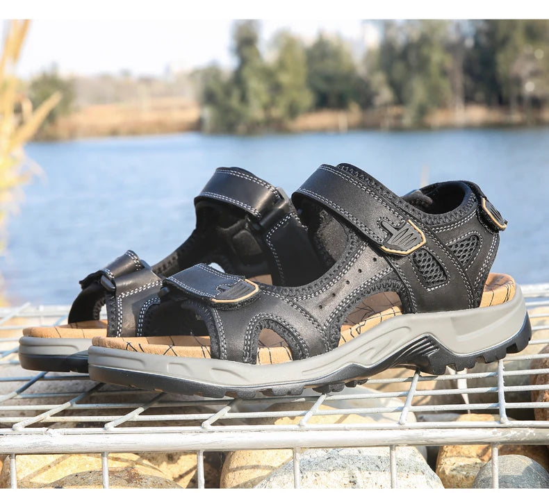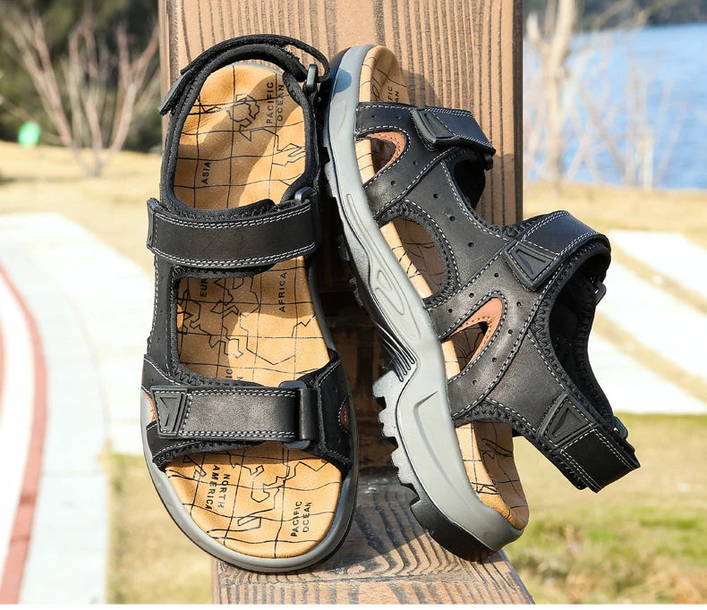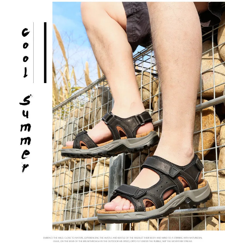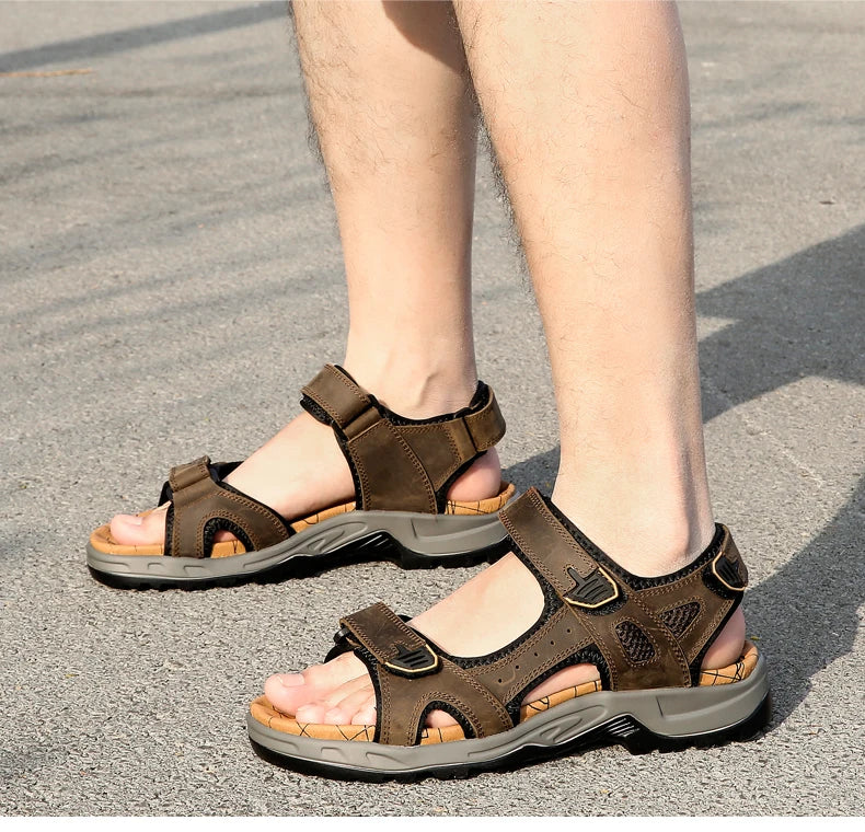 New Fashion Summer Leisure Men Shoes Beach Sandals High Quality Genuine Leather Sandals Soft Large Size Men's Sandals Size 38-48