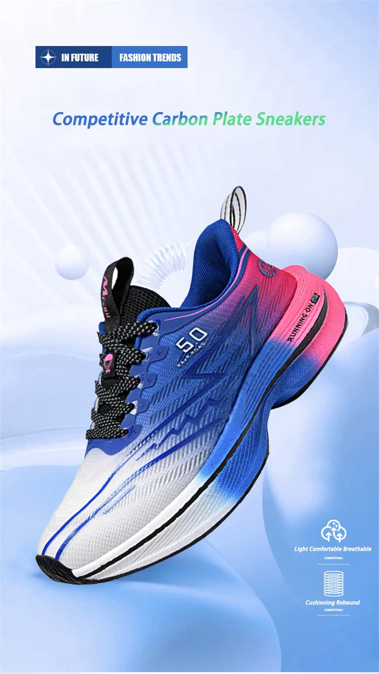 New Men's Carbon Plate Running Shoes Soft Cushion Shock Absorbing Sports Shoes Unisex Sneakers Light Anti-Slip Training Shoes