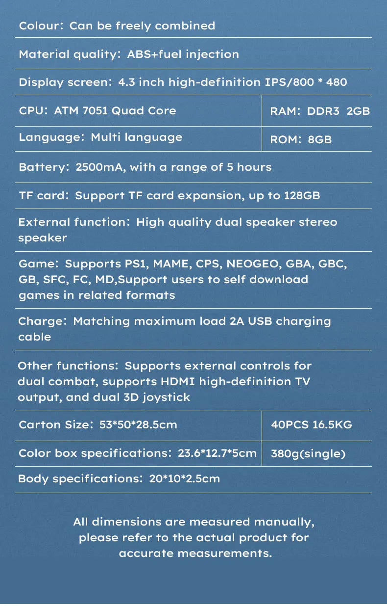 NEW Project X Portable Pocket Video Game Console 128G 40000+ Games 4.3” IPS Screen Support PS1 Retro Gaming Dual Speaker Stereo