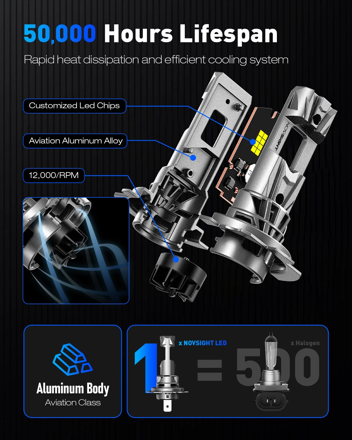 NOVSIGHT H7 LED H11 H8 H9 9005 HB3 9006 HB4 Led H4 Car Headlight Bulbs 70W 18000LM H7 Canbus Mini SIze 6500K White Car Lights