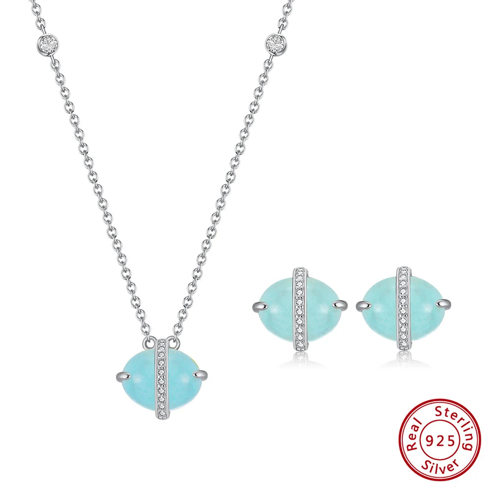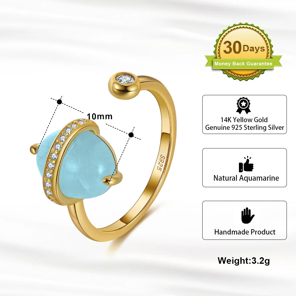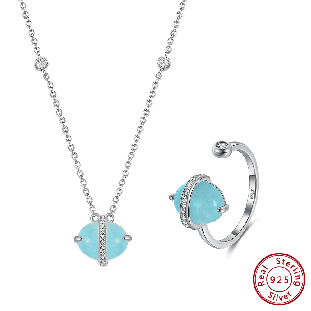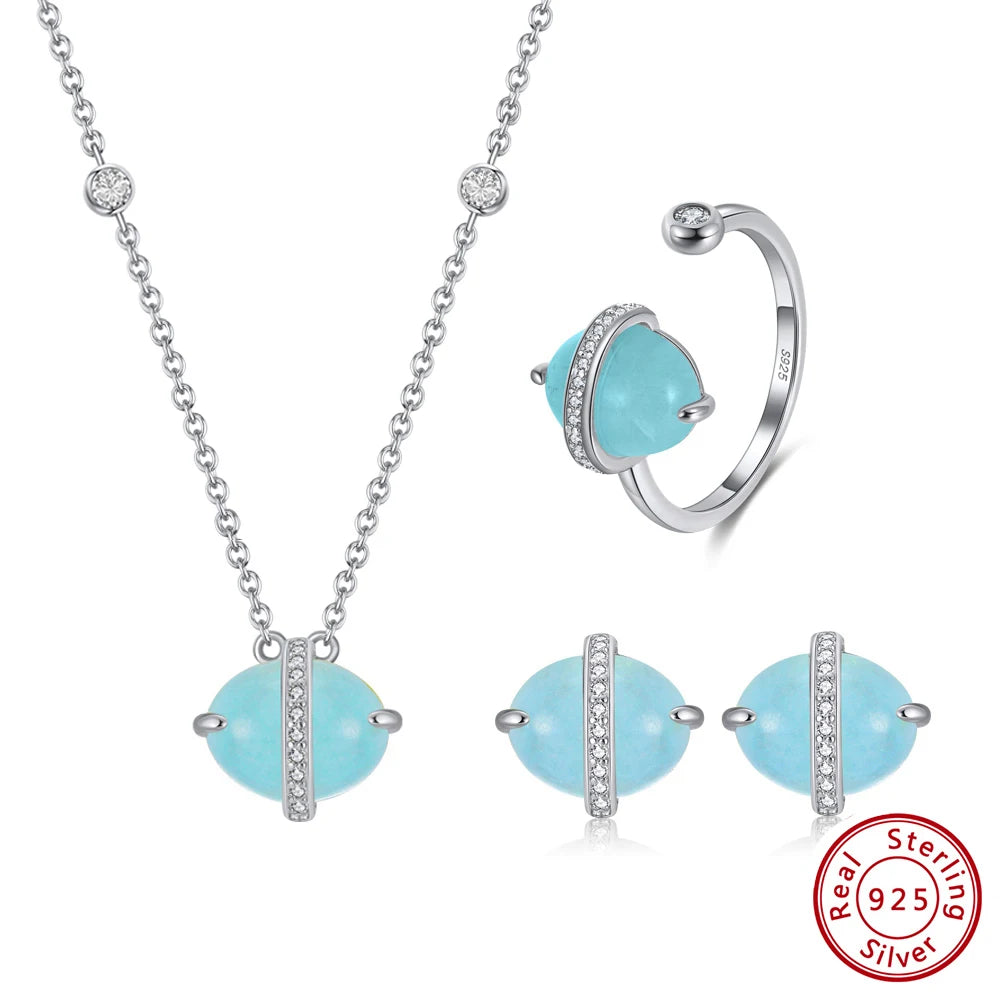 ORSA JEWELS 925 Sterling Silver Natural Aquamarine Earrings Necklace Ring Set 14K Gold Plated for Women Jewelry Sets Gift SSGM04