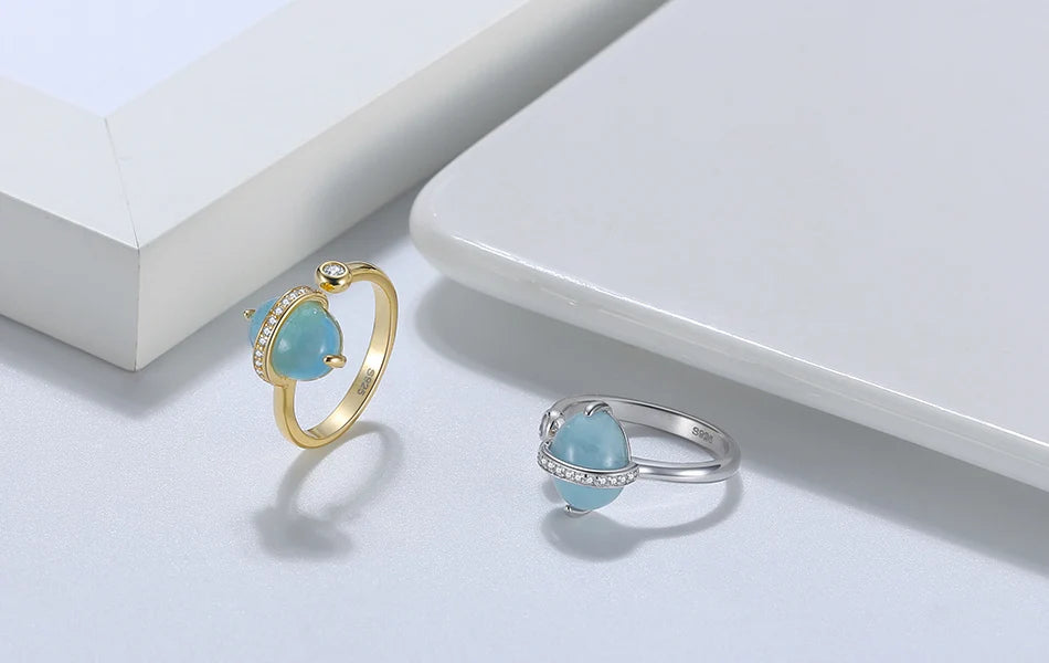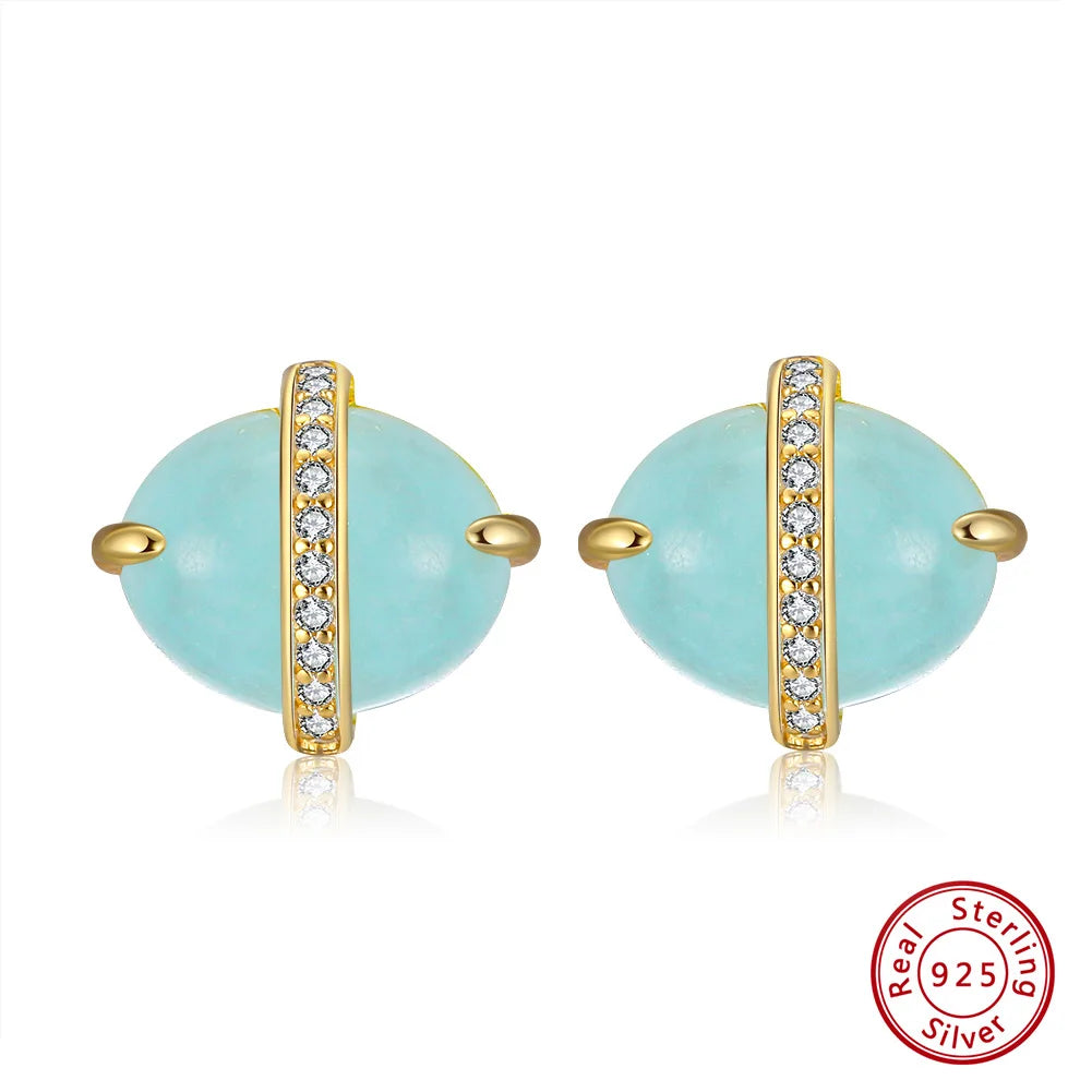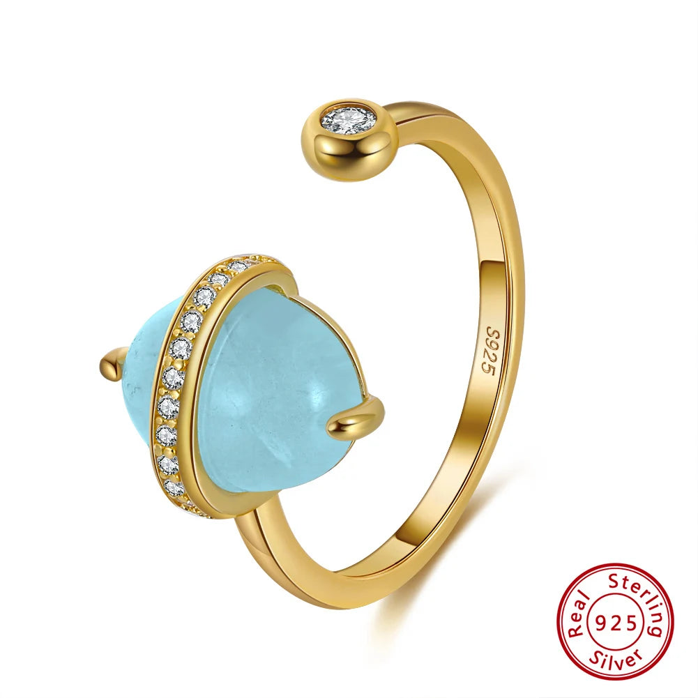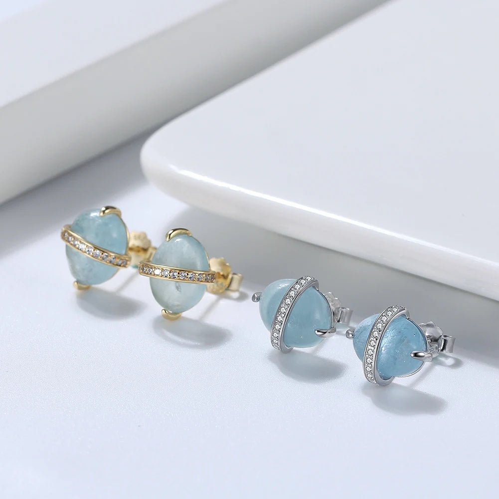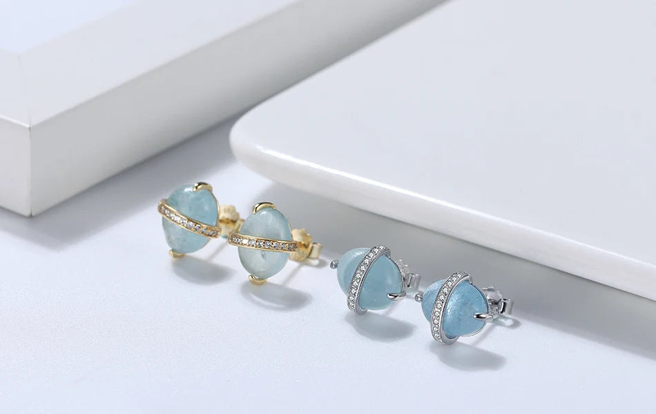ORSA JEWELS 925 Sterling Silver Natural Aquamarine Earrings Necklace Ring Set 14K Gold Plated for Women Jewelry Sets Gift SSGM04