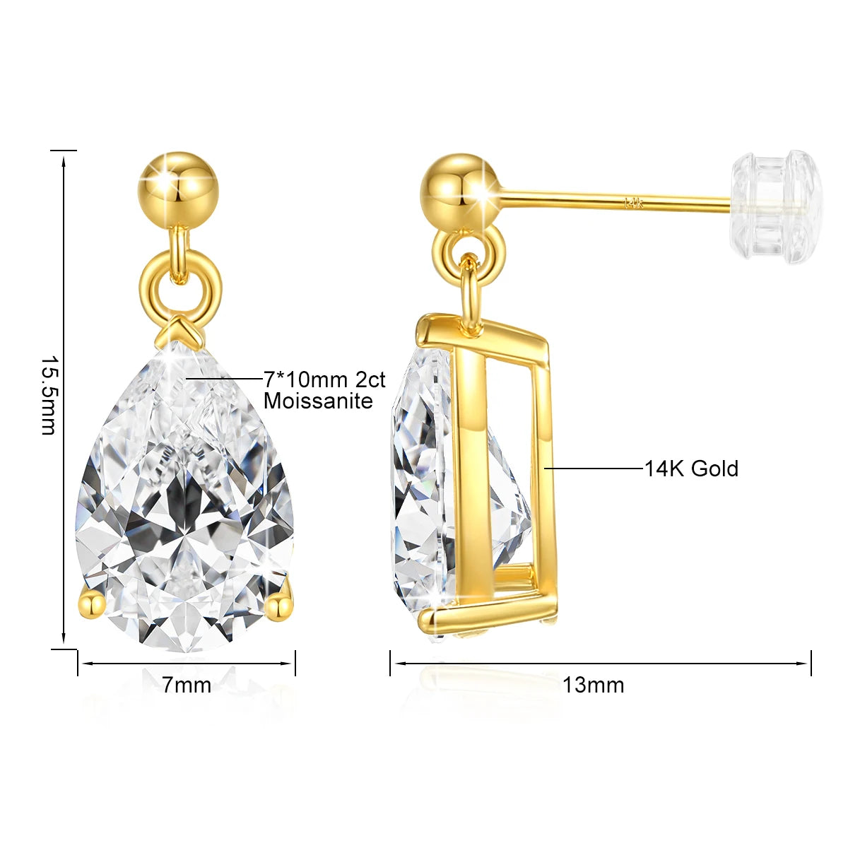 Pear Cut 14k Gold Moissanite Stud Earrings Au585 for Women Diamond Earrings Teardrop Shape Engagement Wedding Jewelry Gifts