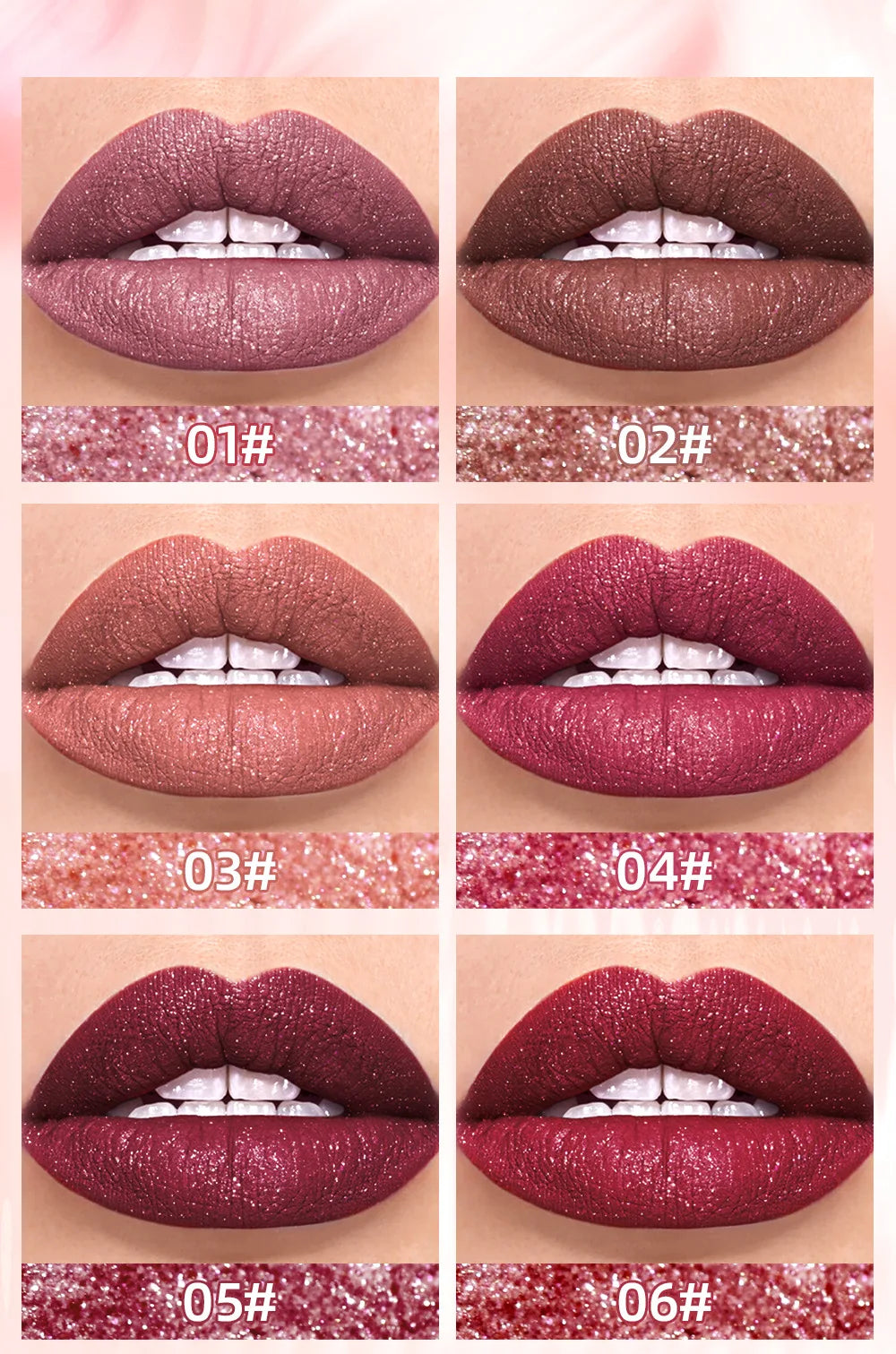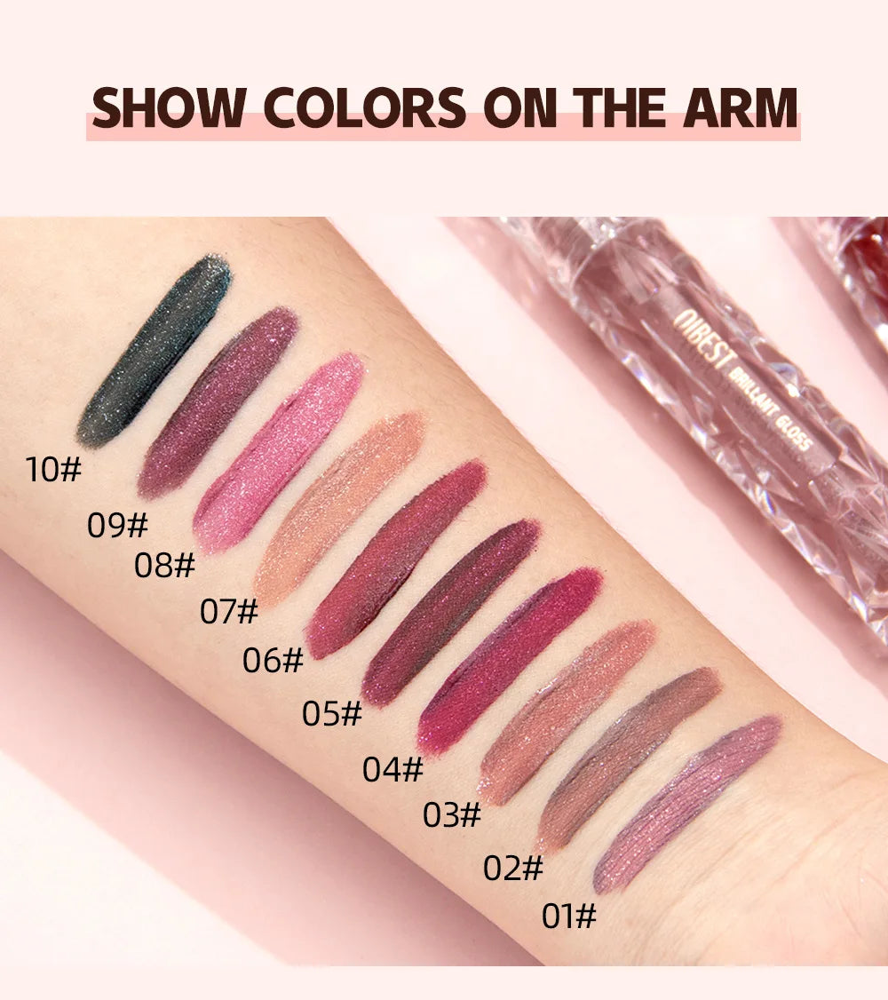 QIBEST Diamond Liquid Lipstick Moisturizing Lasting Purple Sparkling Waterproof Lip Gloss Matte Glitter Lipstick Korean Makeup