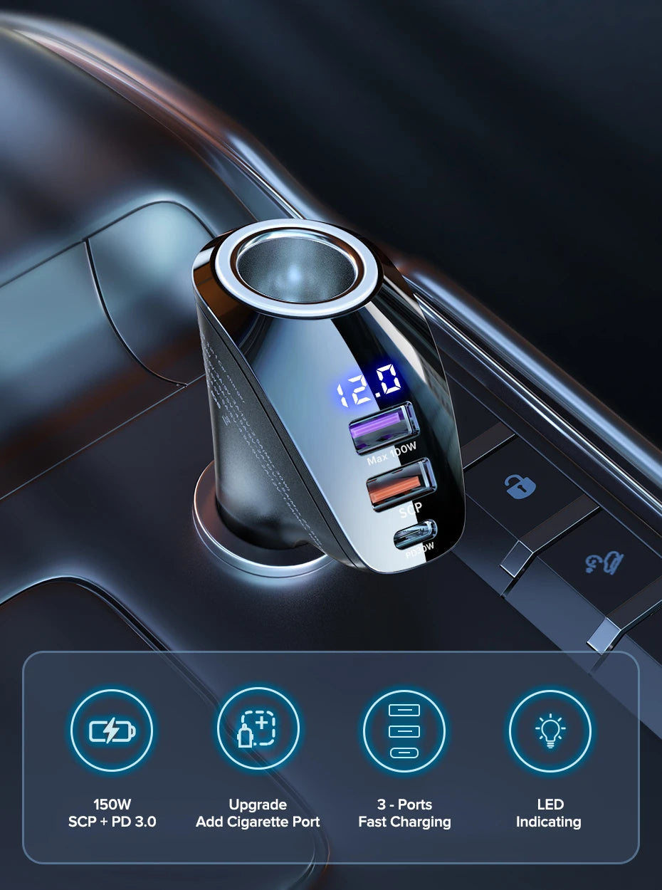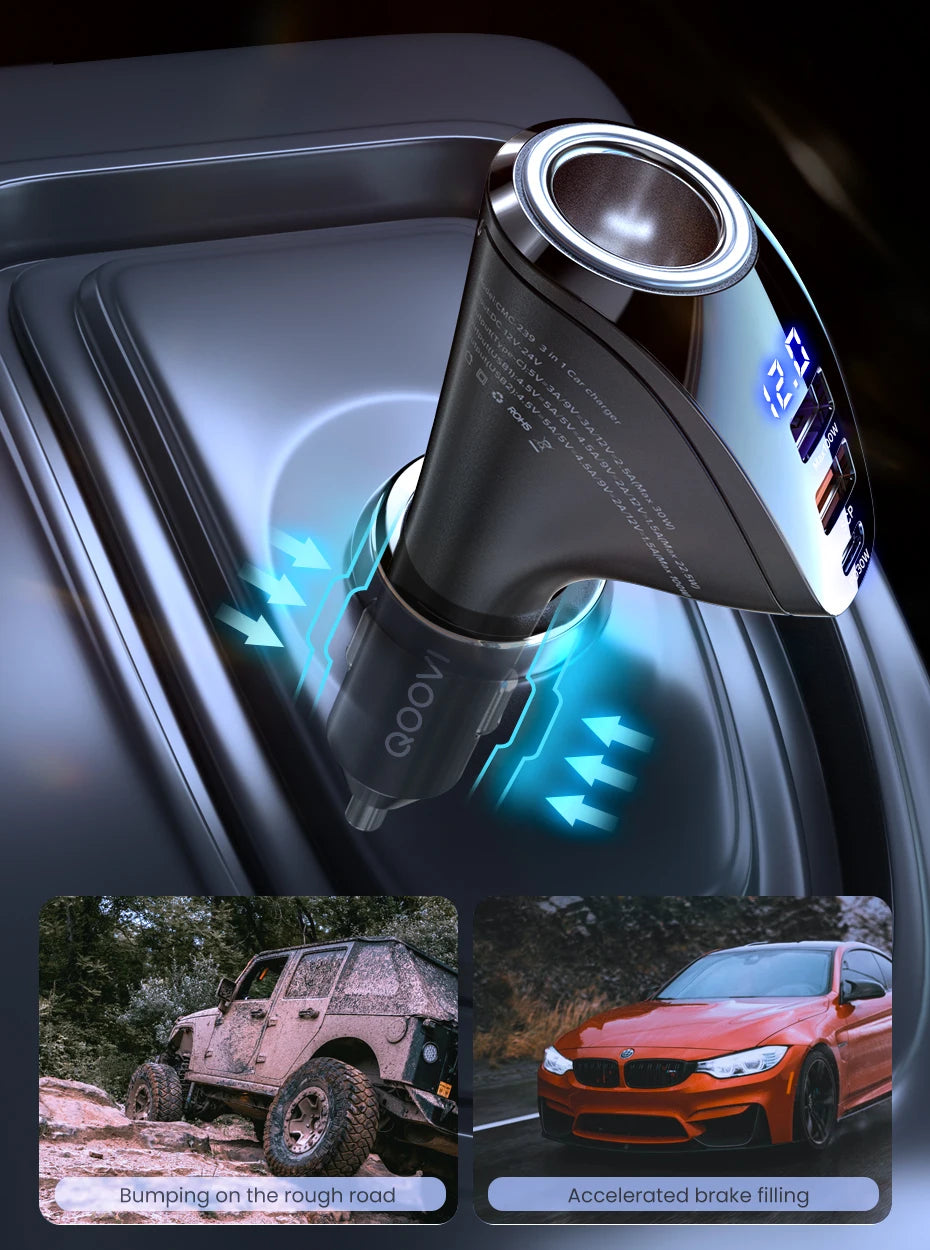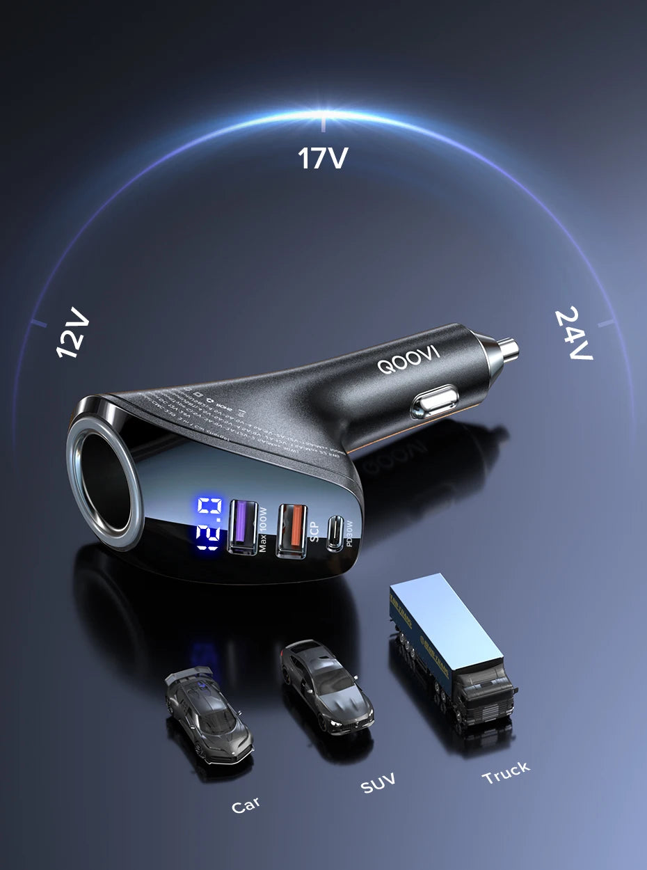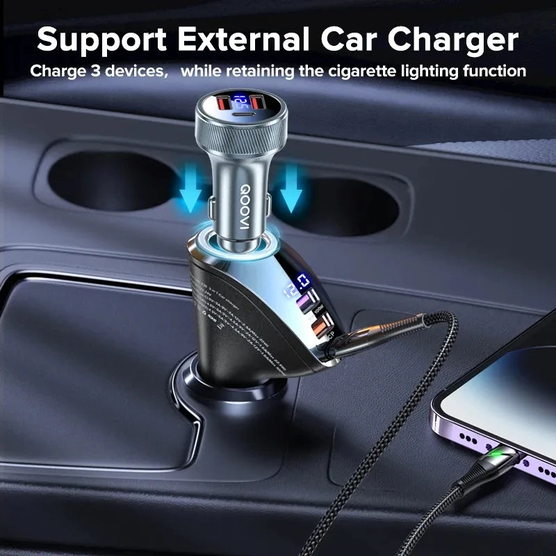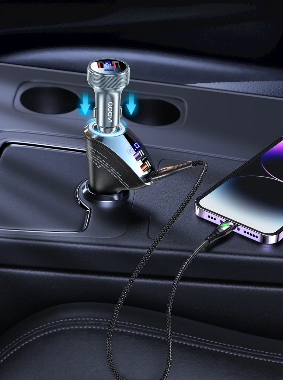 QOOVI 150W 4-Ports Car Charger USB Type C Super Fast Charging PD 4.0 Cigarette Lighter Socket For iPhone Xiaomi Samsung Huawei