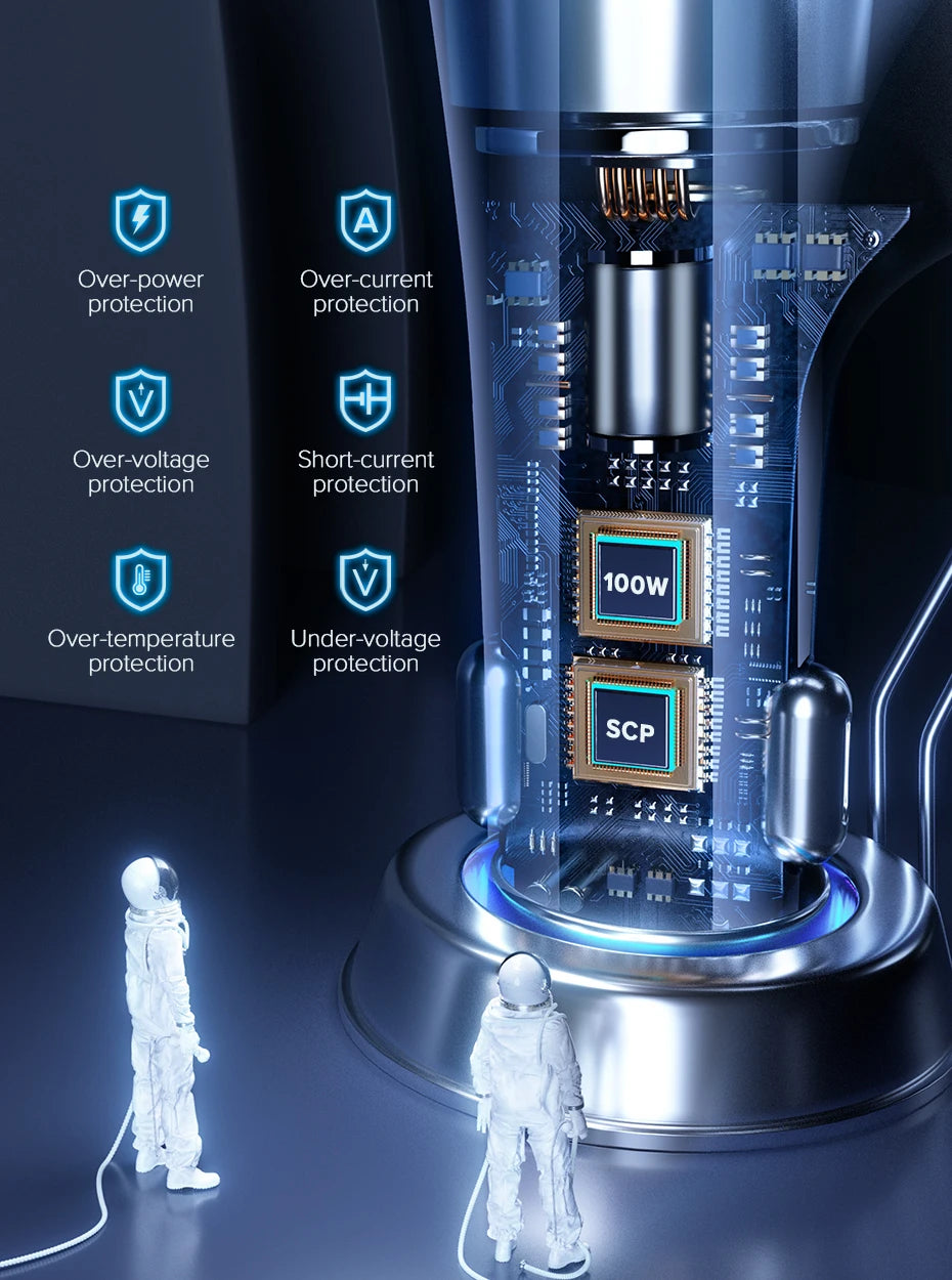 USB A2 QC Port Output: 4.5V/5A, 5V/4.5A, 9V/2A, 12V/1.5A(100W Max.)