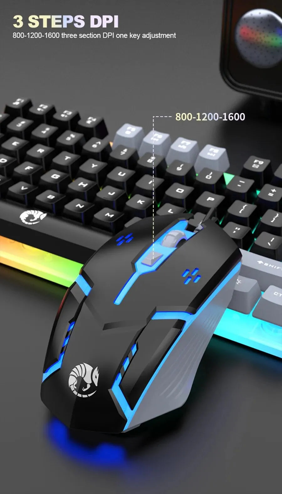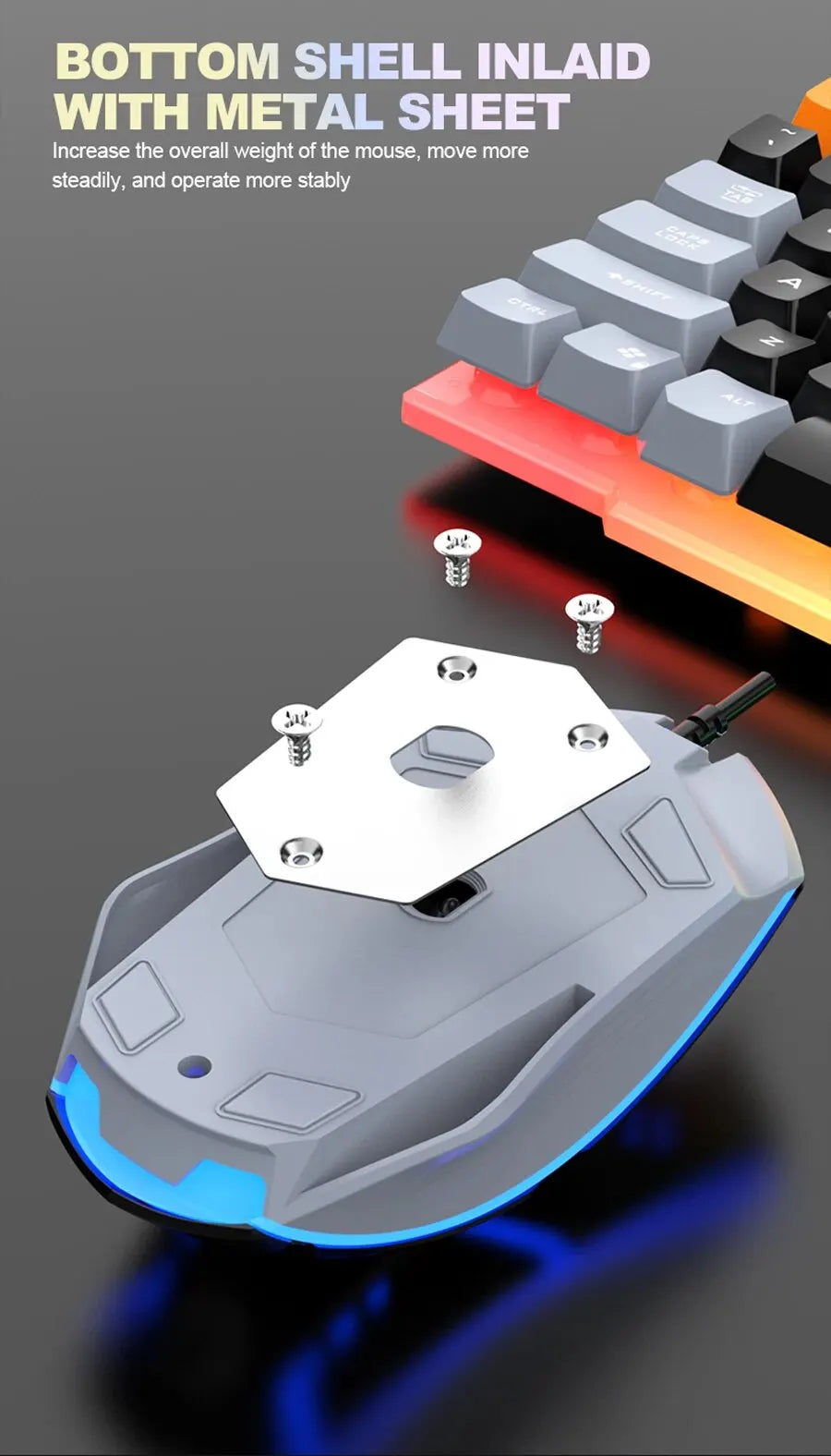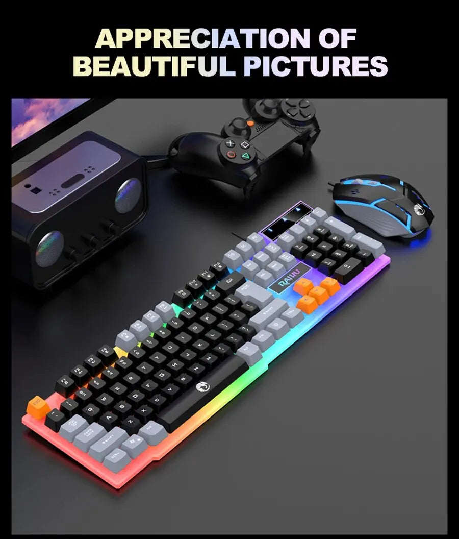 RAIKU T26 Wired 104 Keys Membrane Keyboard And Mouse Suit Kinds of Colorful Lighting Gaming and Office For Windows and IOS