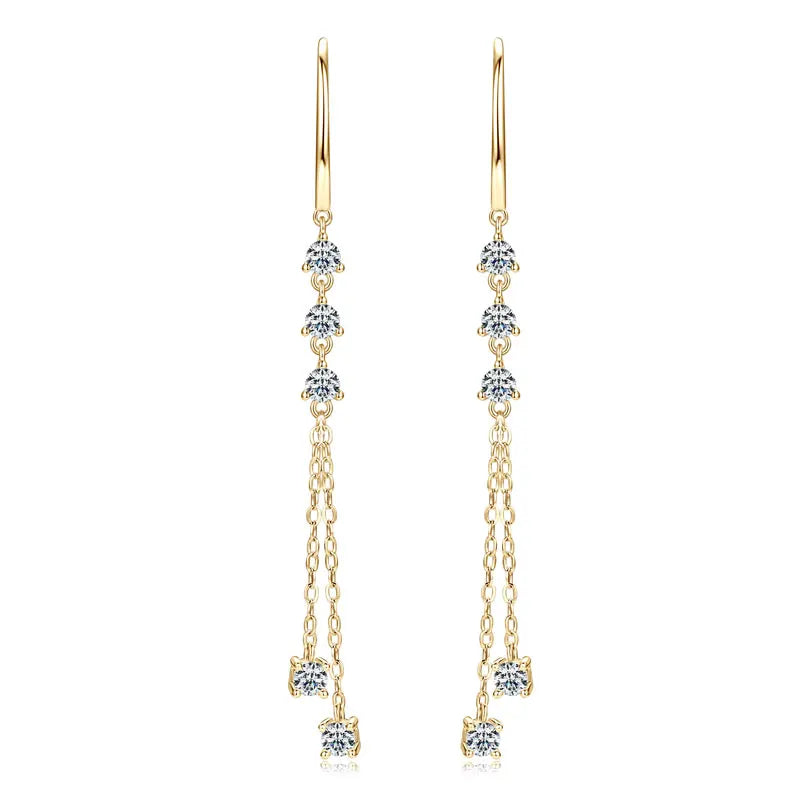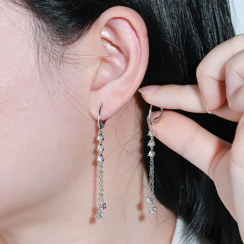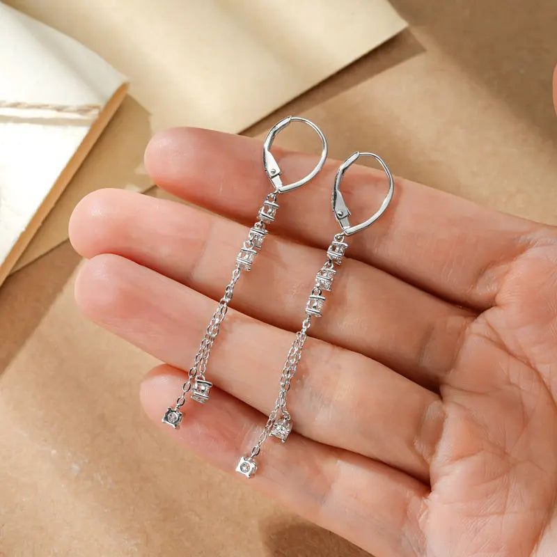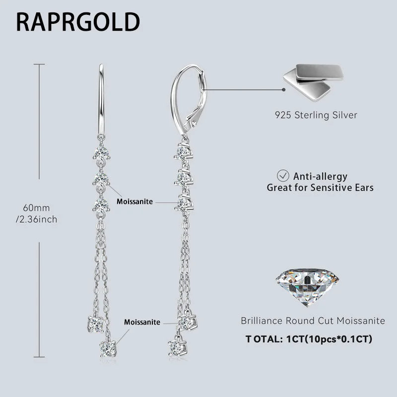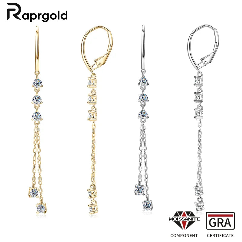 RAPRGOLD Certified Moissanite Tassels Chain Hoop Earring for Women 925 Sterling Silver Dangling Earrings Jewelry Gift pendientes