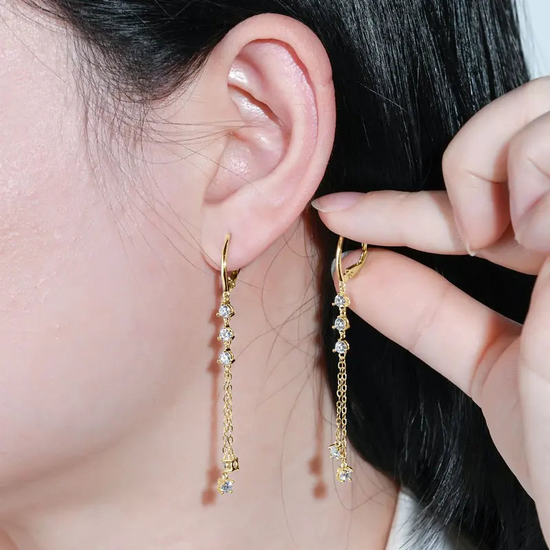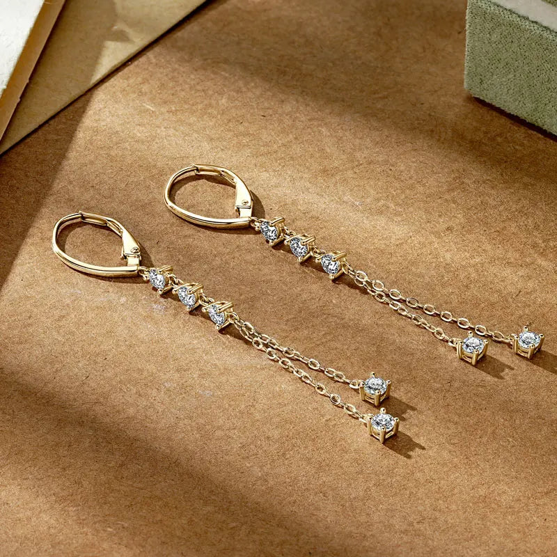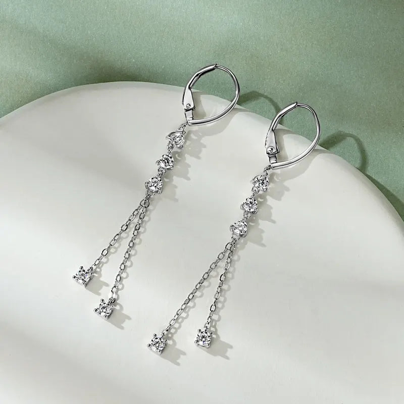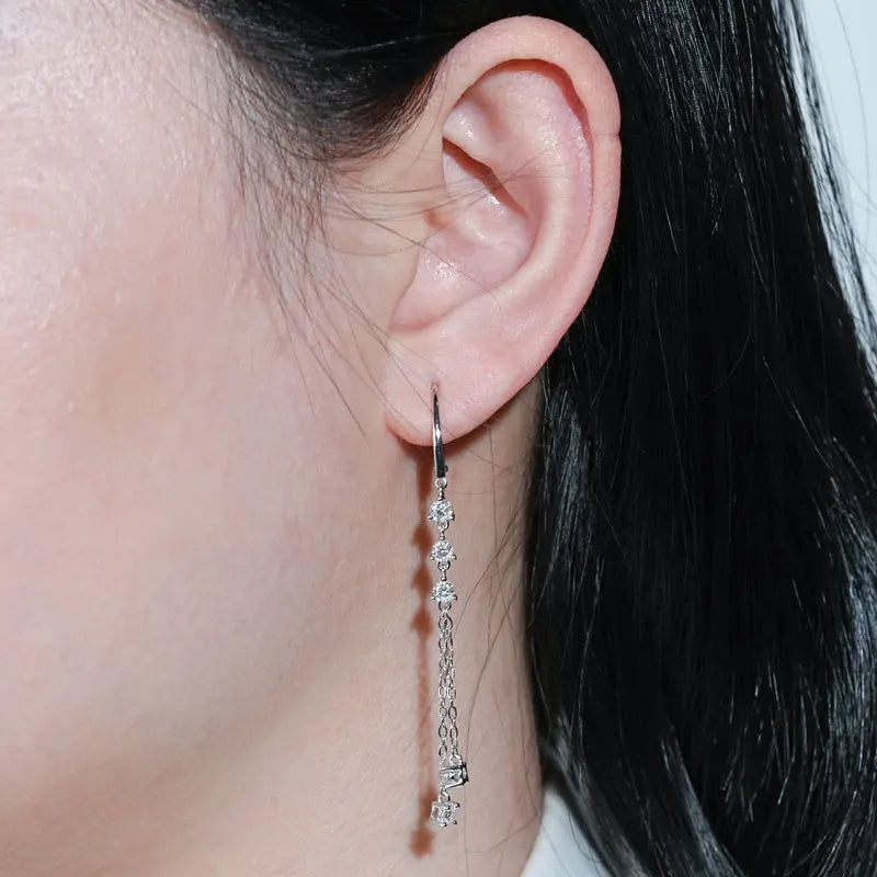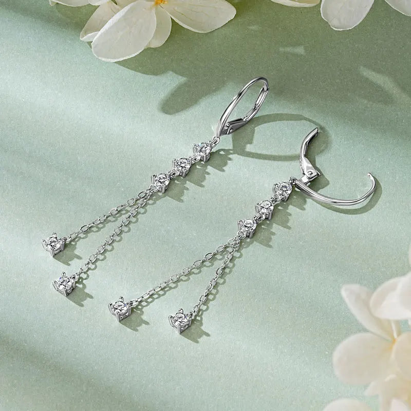 RAPRGOLD Certified Moissanite Tassels Chain Hoop Earring for Women 925 Sterling Silver Dangling Earrings Jewelry Gift pendientes