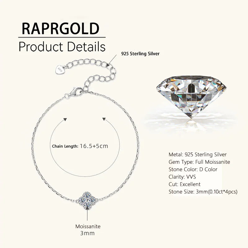 keywords 2: MoissaniteFour Clover Flower Charm Bracelet Chains