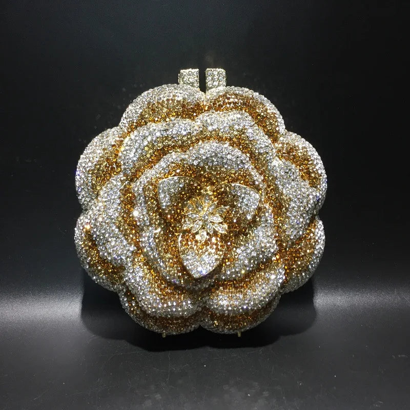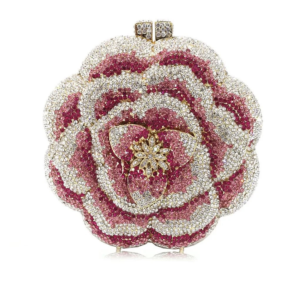 Rose Flower Pink/Green Rhinestones Evening Clutches Women Floral Yellow Crystal Evening Bags Bridal Wedding Party Clutch Purse