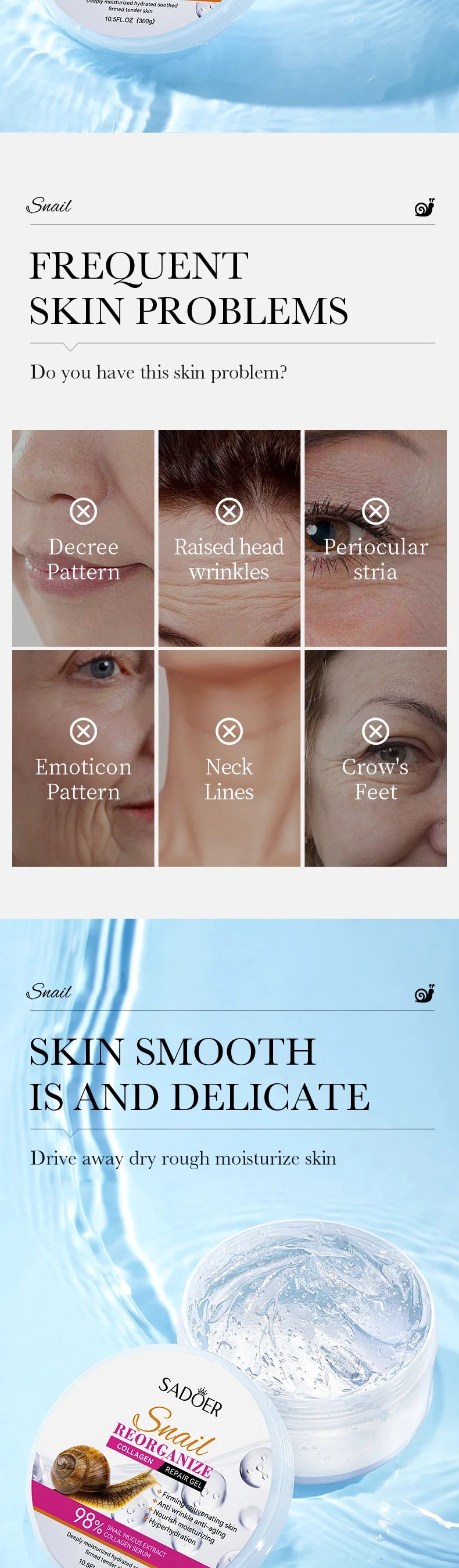 SADOER Snail Collagen Face Cream Gel Firming Repair Brightening Moisturizing Facial Creams Beauty Face Skin Care Products