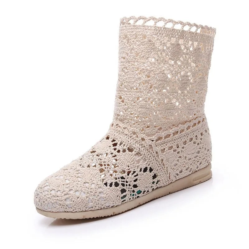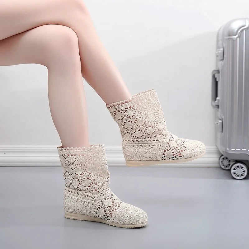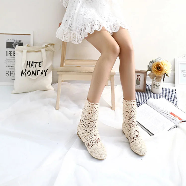 Summer Shoes Breathable Mesh Summer Boots Women Flat Heel Ankle Botas Womens Boots Fashion Cut-Outs Brand ZH262
