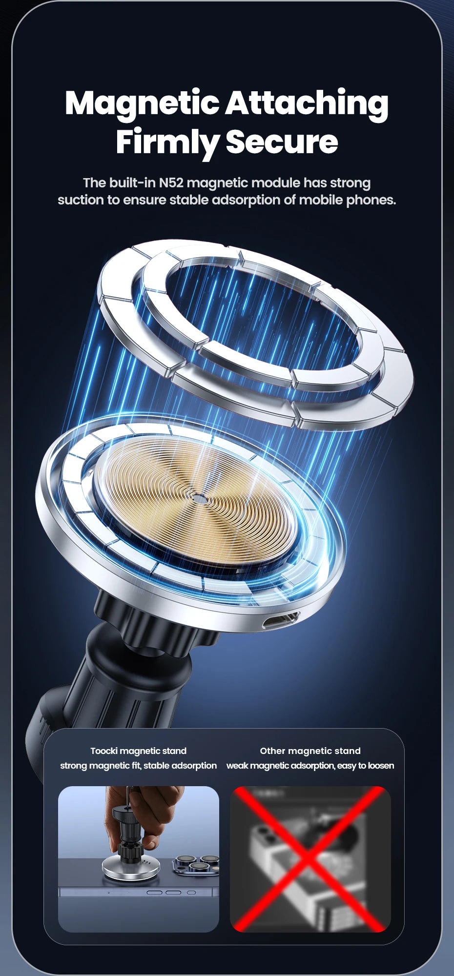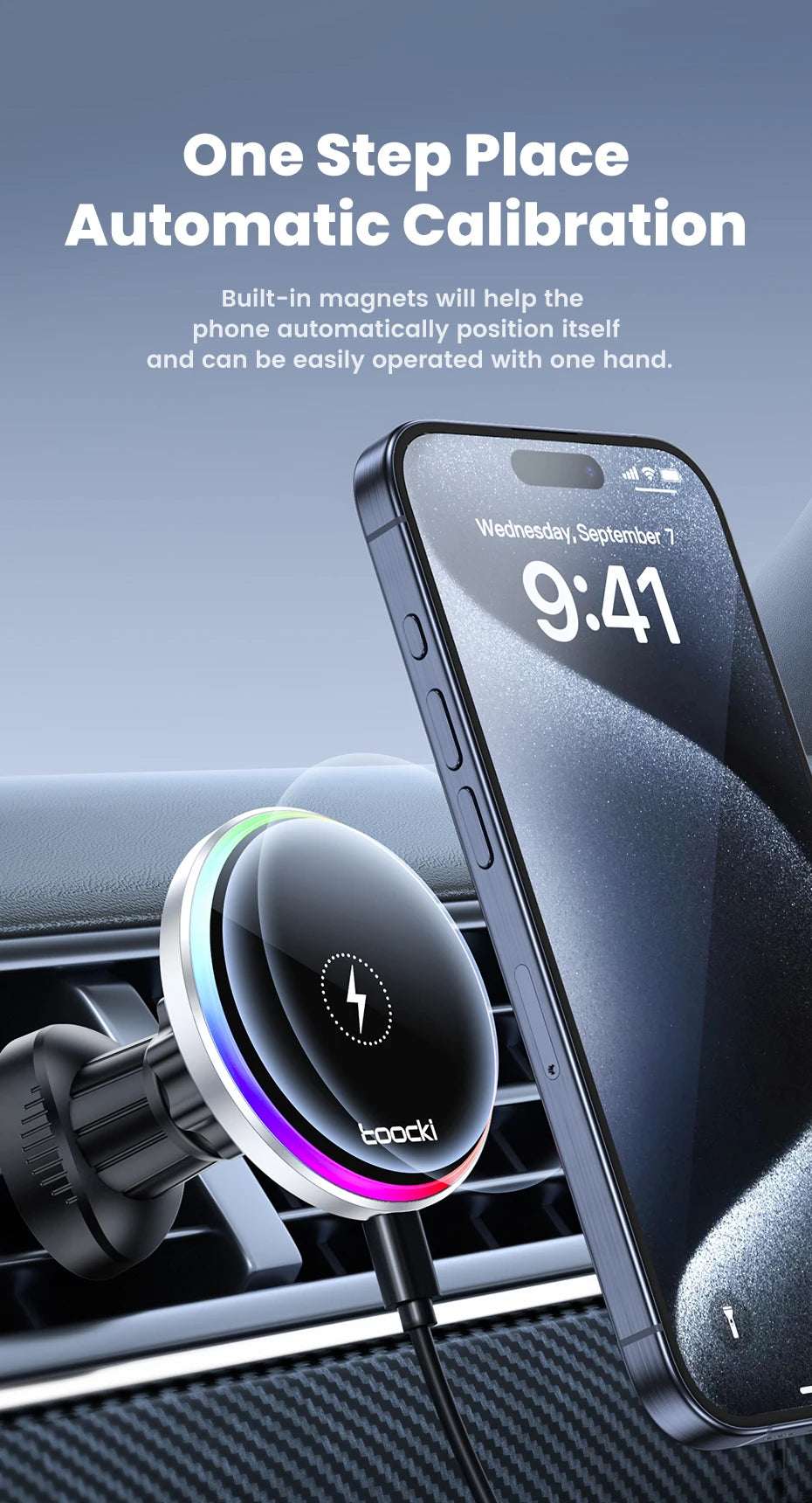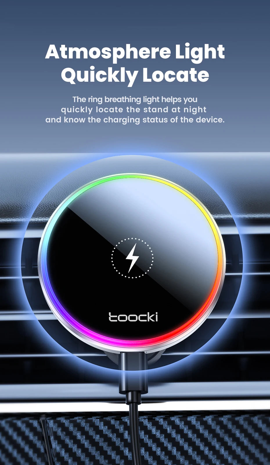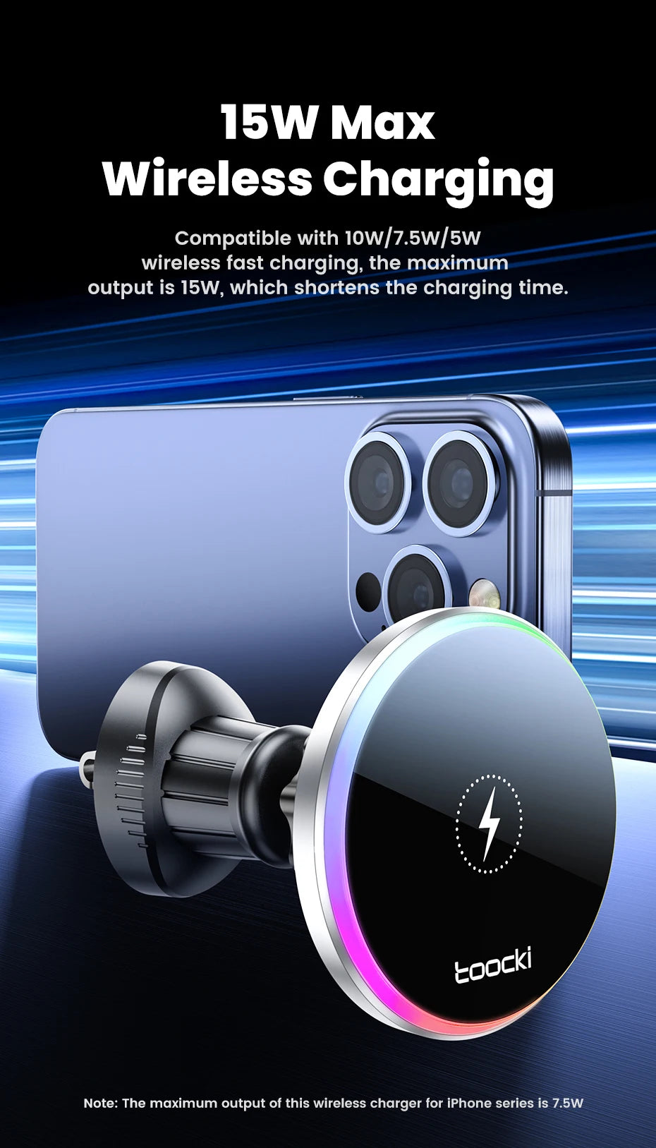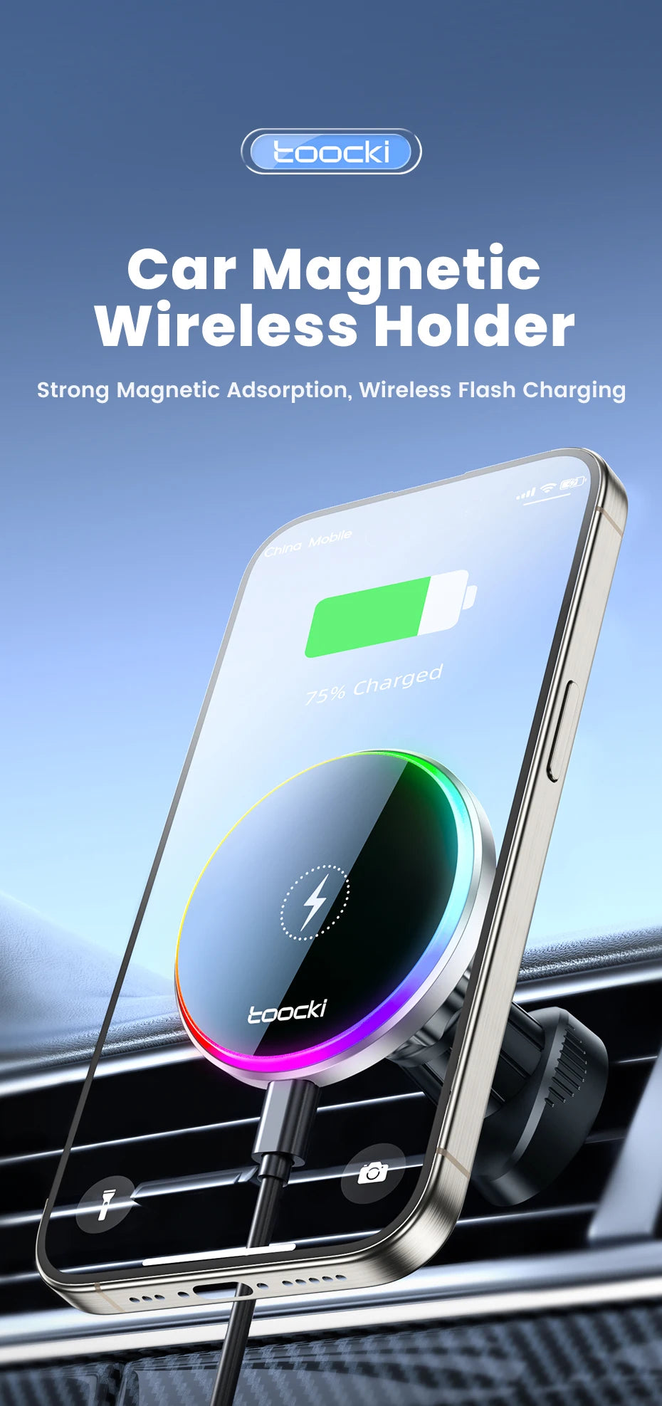 Toocki RGB Magnetic Car Phone Holder 15W Wireless Charger Car For iPhone 15 14 13 Pro Max Samsung Phone Car Charger Holder Stand