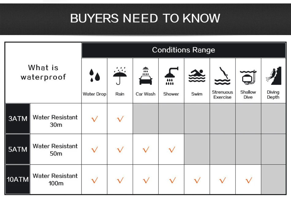 Water Resistance Depth: 5Bar