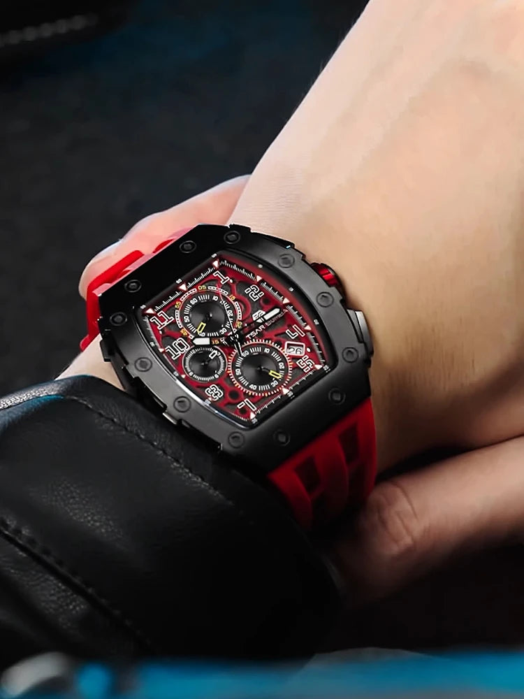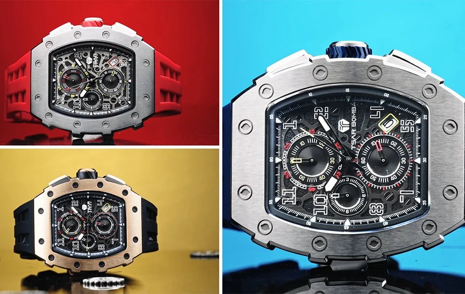 TSAR BOMBA Tonneau Watches for Men Sapphire Quartz Wristwatch Fashion Timepiece 5ATM Waterproof Clock Luxury Mens Watch