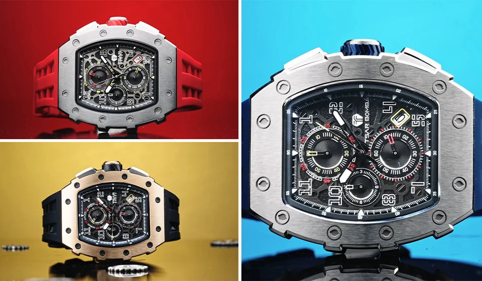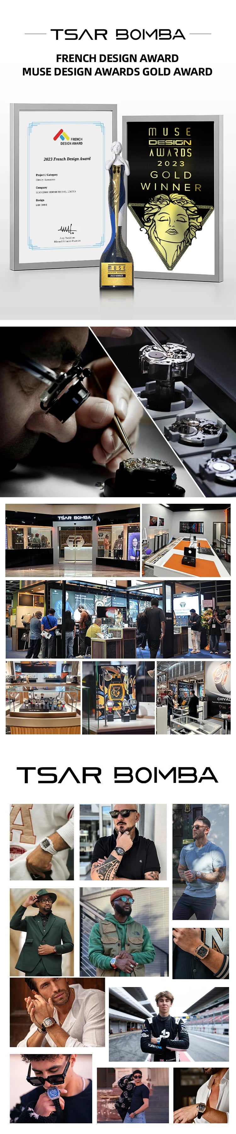 TSAR BOMBA Watch for Men Luxury Brand Tonneau Design Waterproof Clock Stainless Steel Wristwatch Fashion Rectangle Mens Watch