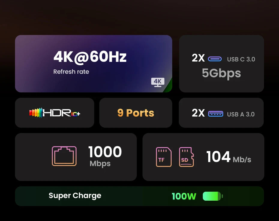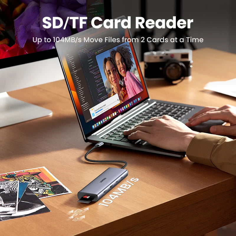 SD&TF Card Slots: 104MB/s, support read&write 2 cards simultaneously