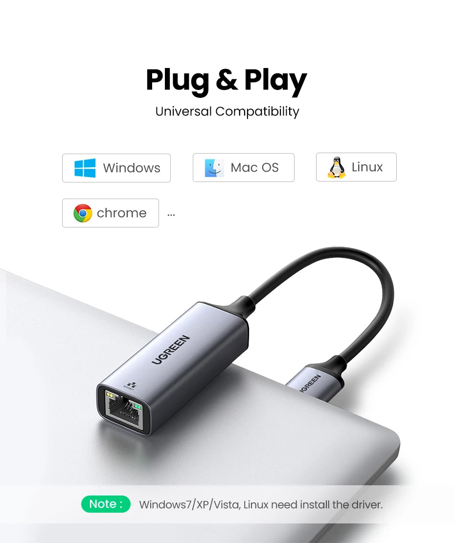 UGREEN USB Ethernet Adapter USB 3.0 Network Card to USB RJ45 Lan for PC Windows 10 Xiaomi Mi Box 3/S Nintend Switch Ethernet USB