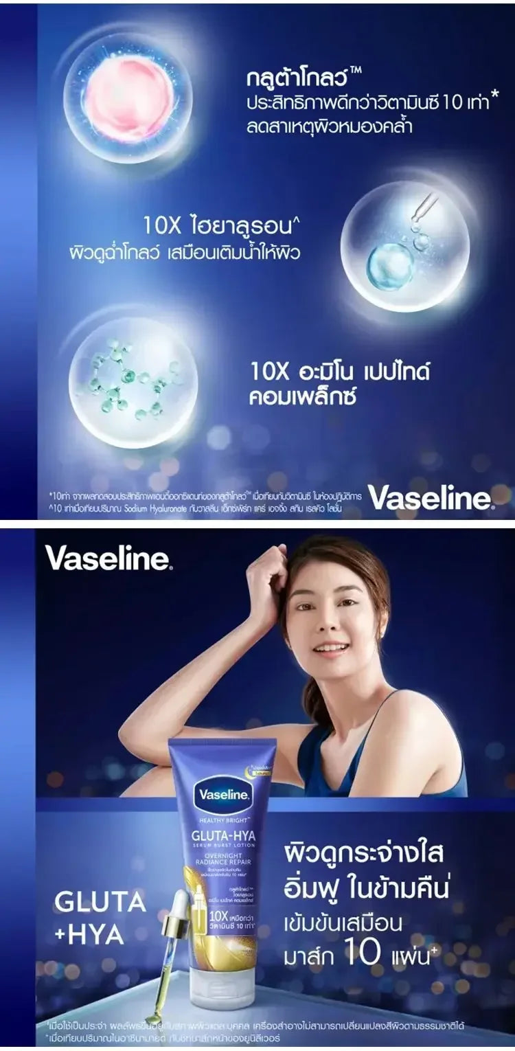 Vaseline Night Whitening Body Lotion 300ml Body Cream Rose Nicotinamide Moisturizing Whitening Radiance Repairing Body Skin Care