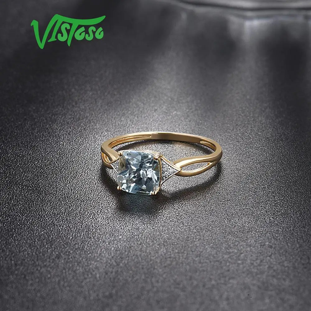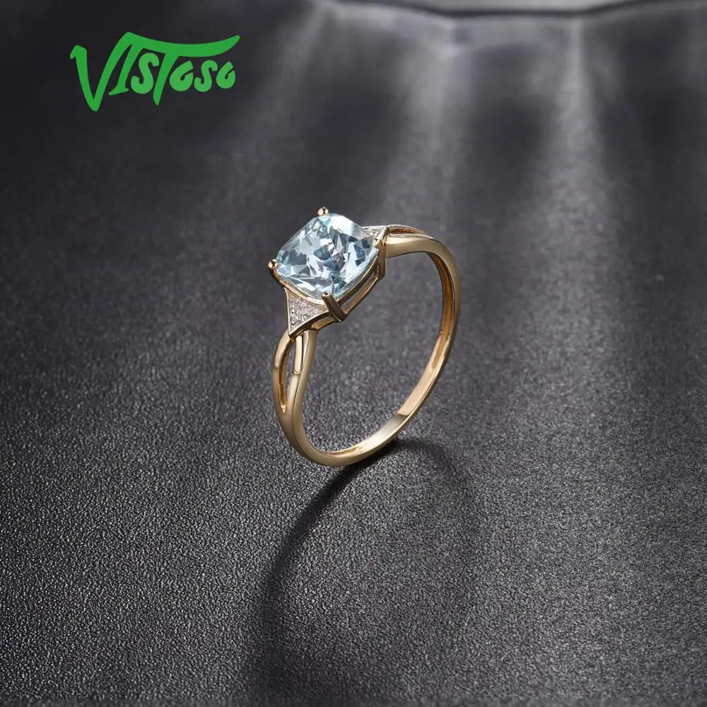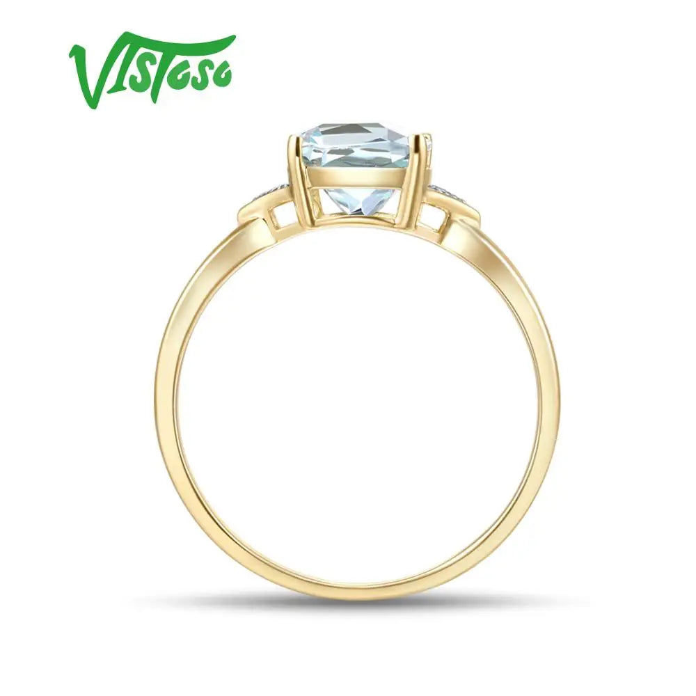 VISTOSO 14K 585 Yellow Gold Ring For Women Diamond Sky Blue Topaz Rings Gold 585 Real Original Anniversary Fine Jewelry