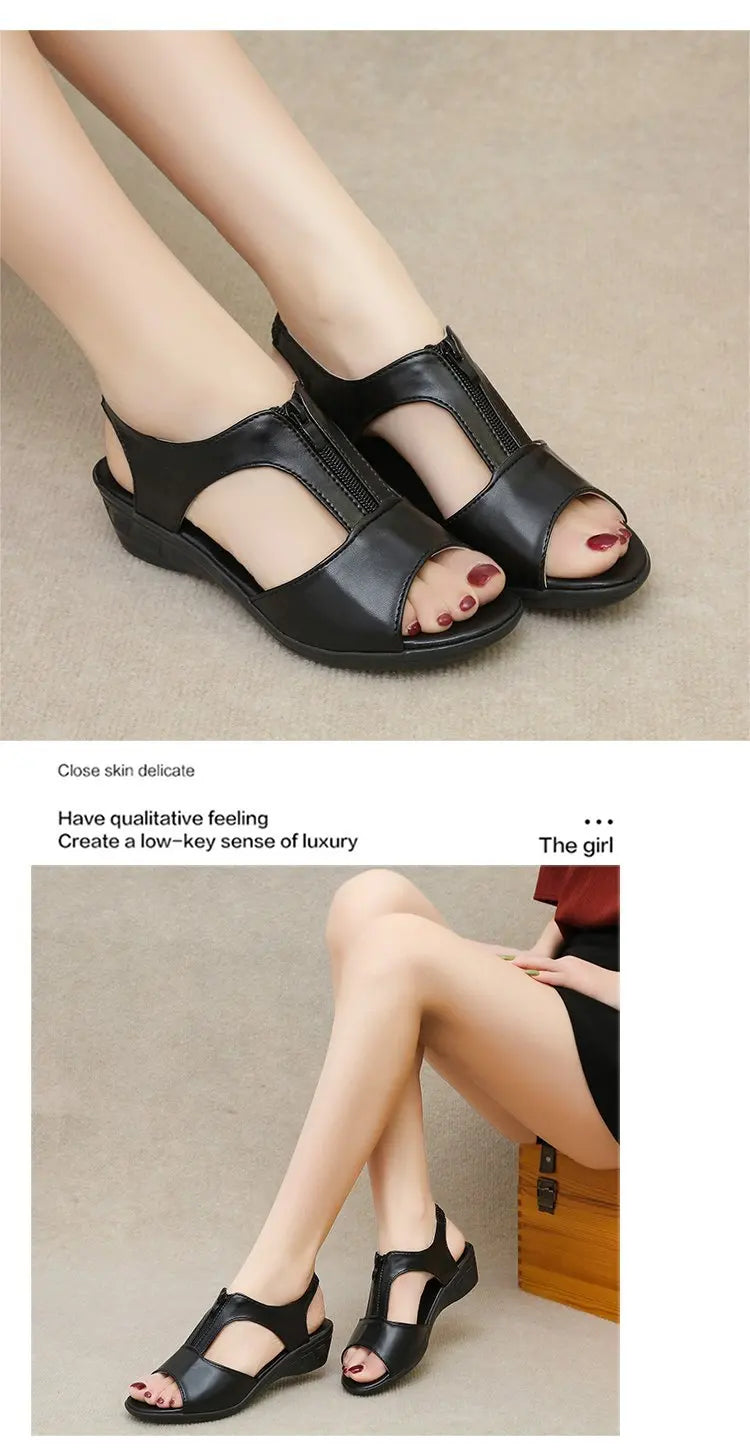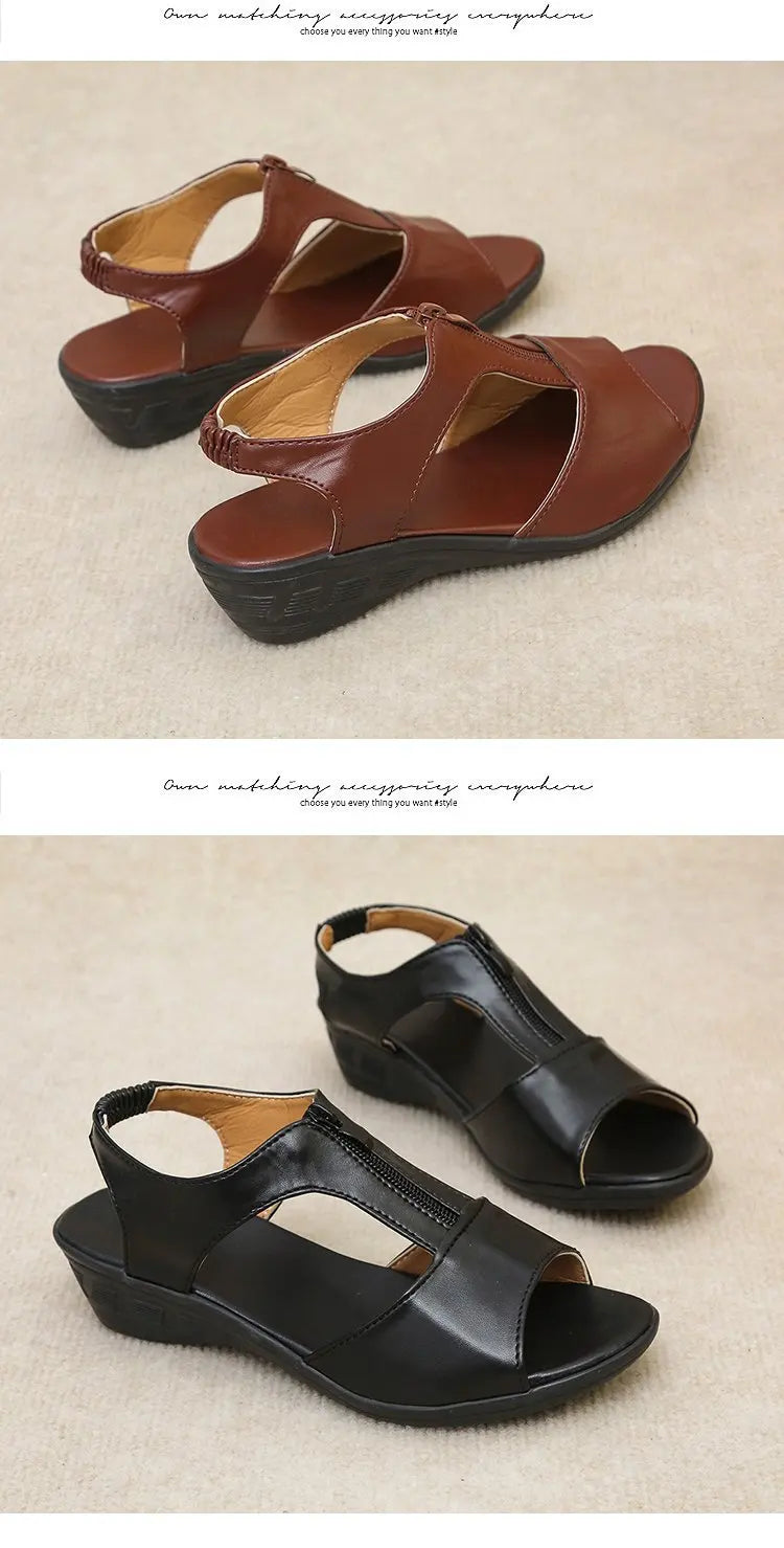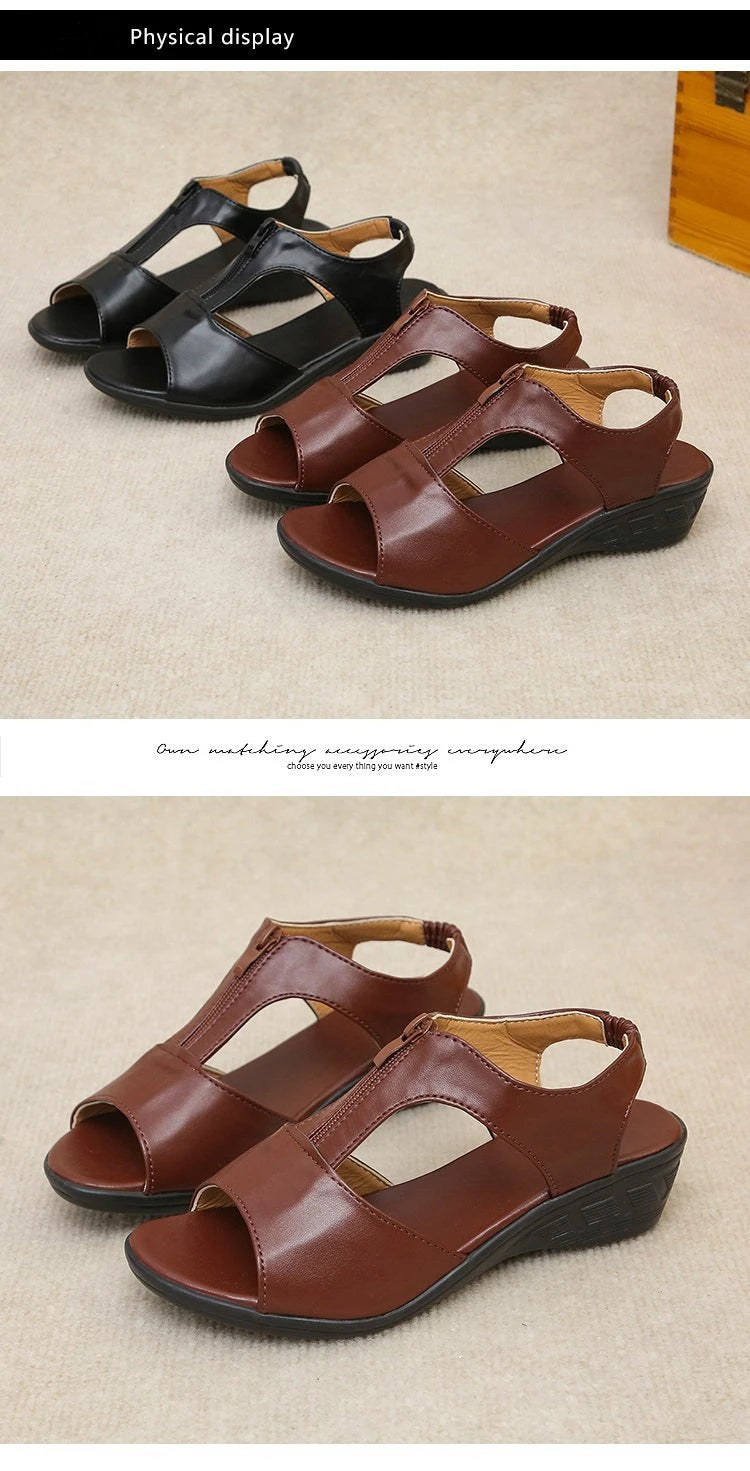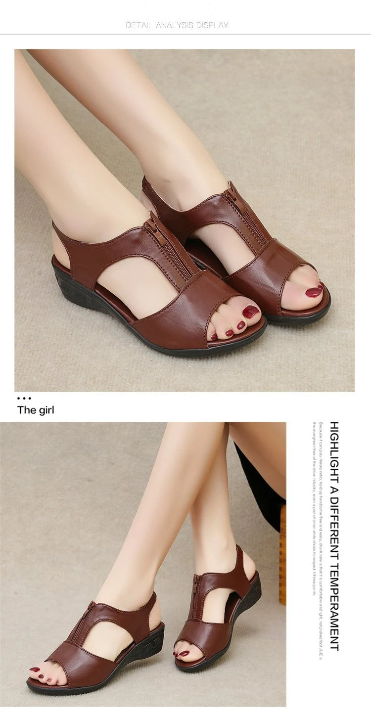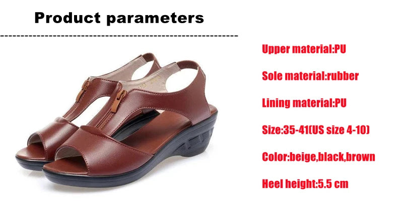 WOIZGIC Women Old Mother Laides Female Sandals Platform Shoes PU Leather Non Slip Beach Summer Cool Zipper Size 35-41 PGP-1153