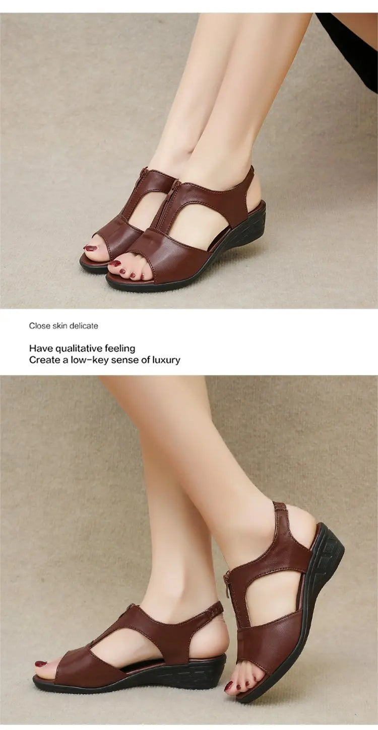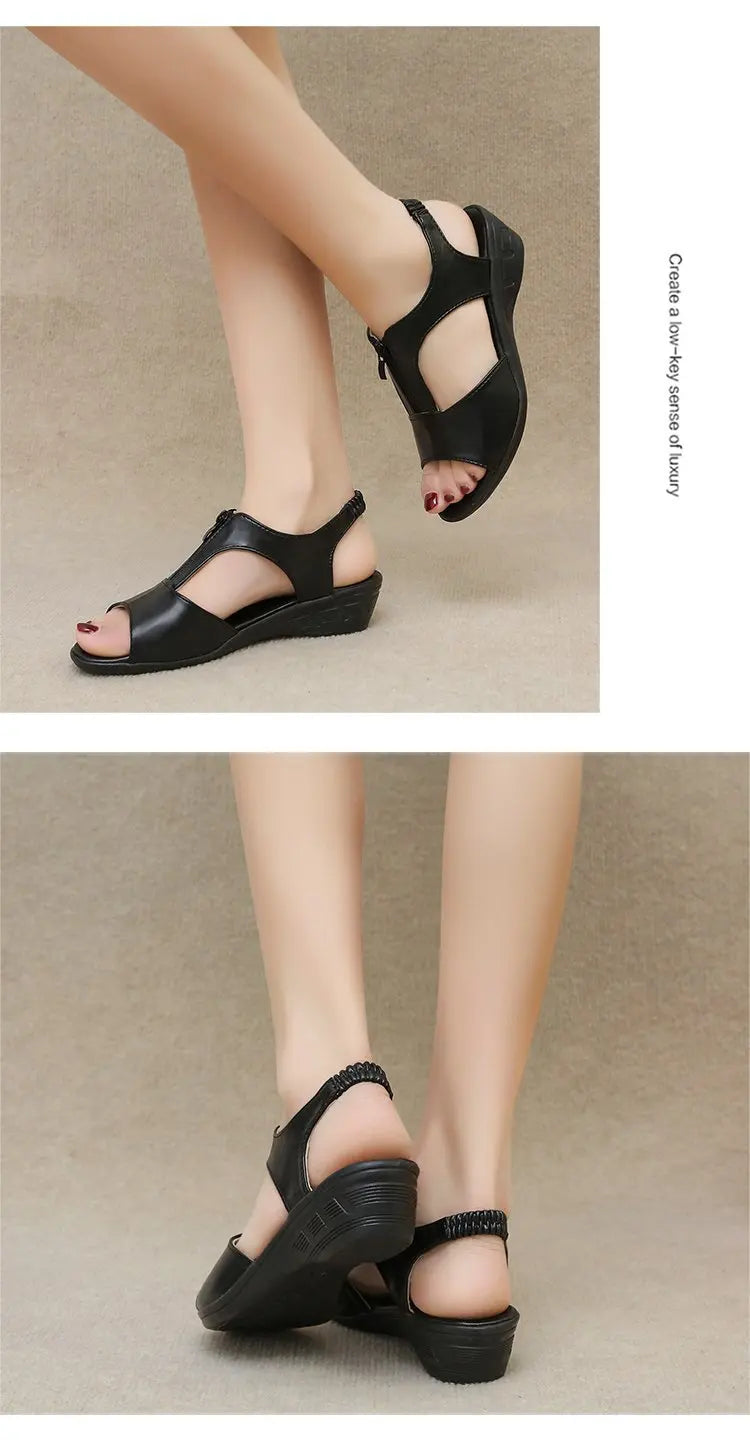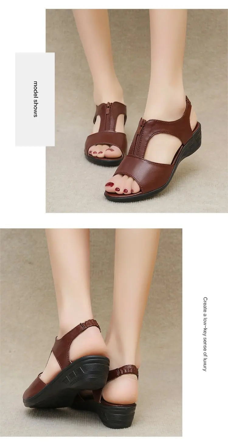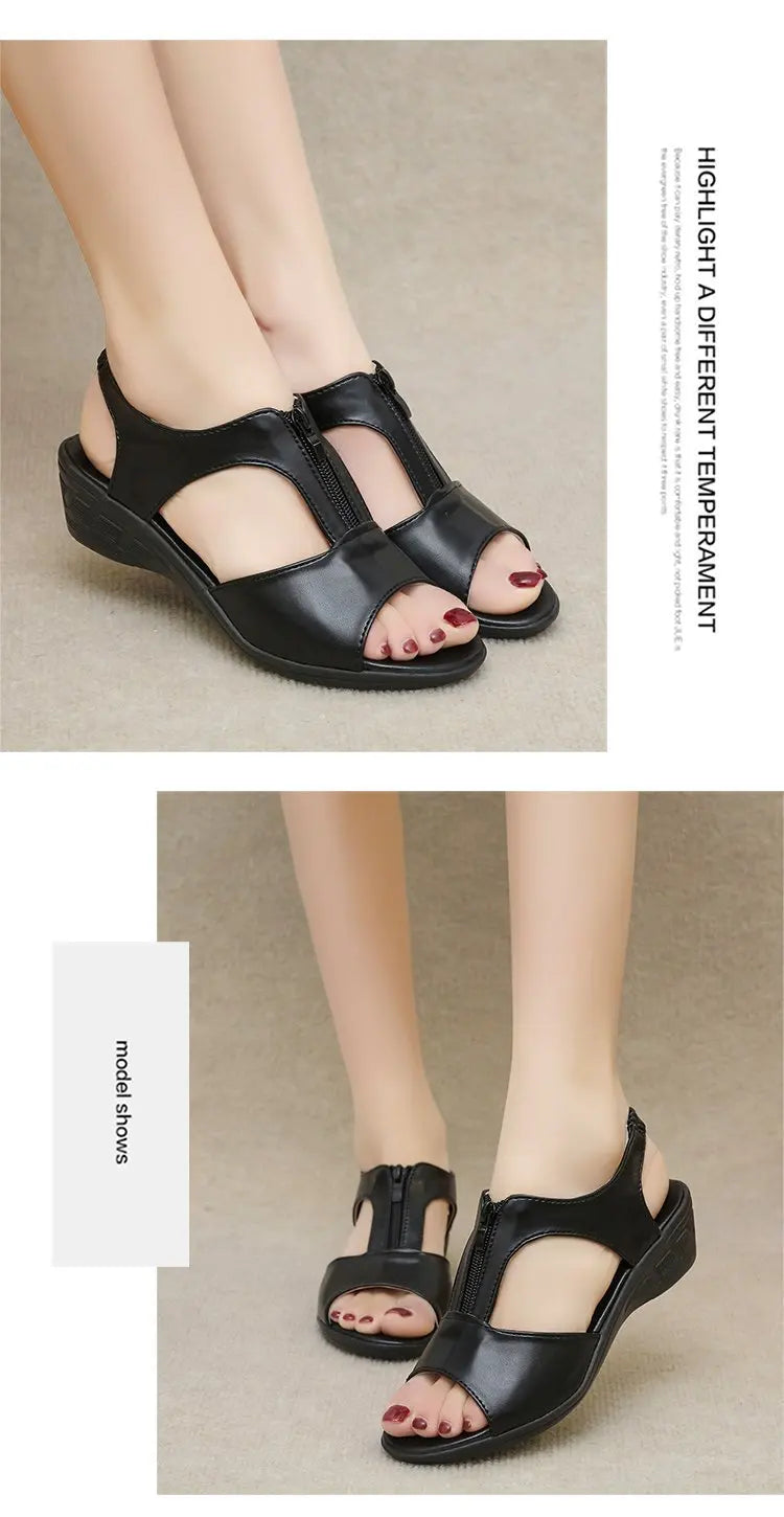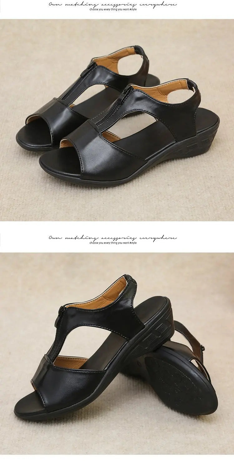 WOIZGIC Women Old Mother Laides Female Sandals Platform Shoes PU Leather Non Slip Beach Summer Cool Zipper Size 35-41 PGP-1153