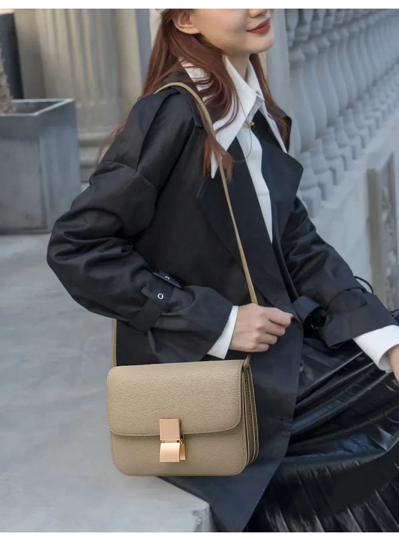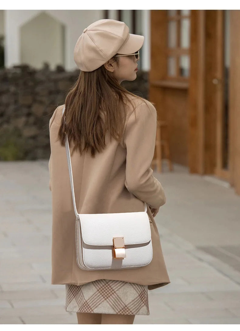 Women Shoulder Bag Female Split Leather Ins Vintage Messenger Lady Small Square Palm Texture Printing Box Flap Underarm Bag 2022