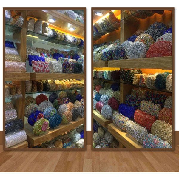 Women XIYUAN Evening Bags Gold/Silver Chain Shoulder Bags Handbags Stones Day Clutches Diamonds Metal Ladies Clutch Handbags